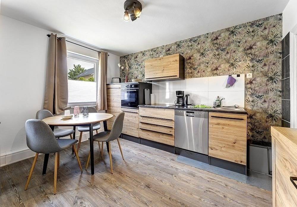 Mit großer überdachter Terrasse und Grundstück. 2 Schlafzimmer. Bis zu 4 Personen. 60 qm. Komfortabel eingerichtet. Abschließbare Fahrradhütte. Nur 200 Meter bis zum Bahnhof. Gratis WLAN, Kinderreisebett/-hochstuhl. Stellplatz direkt am Haus