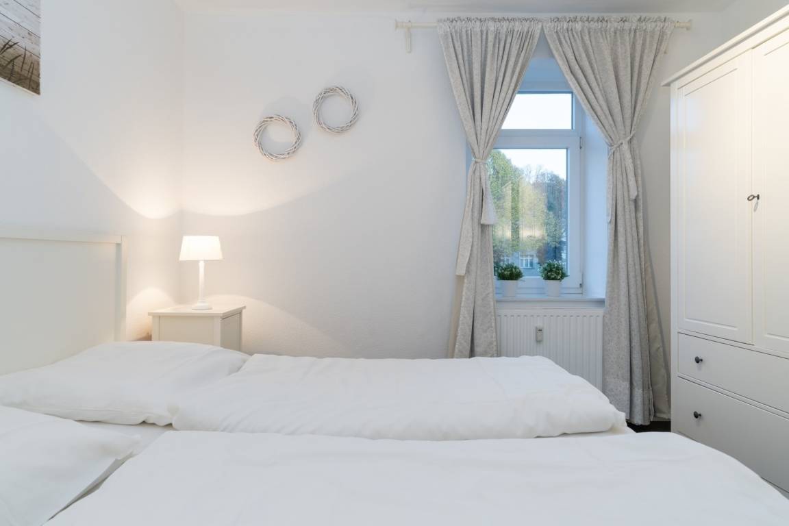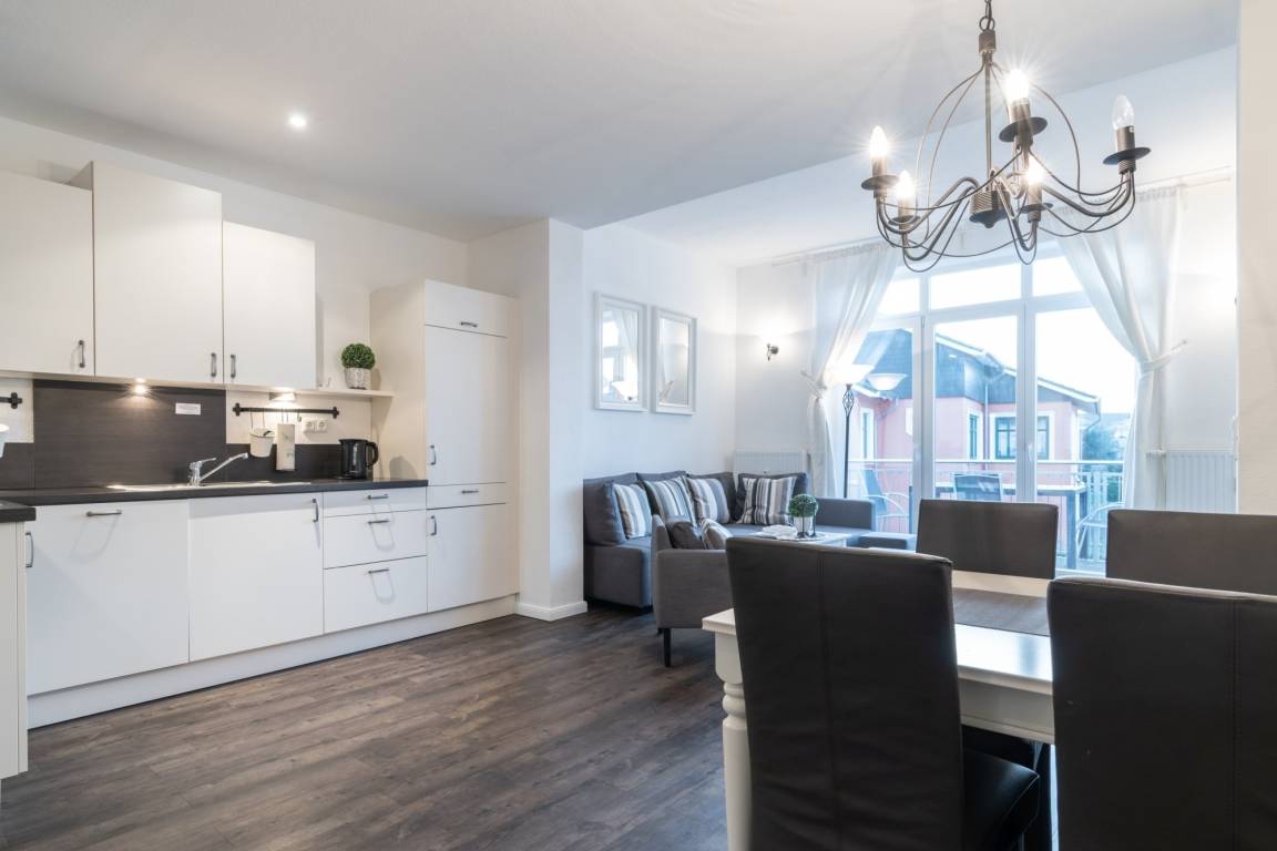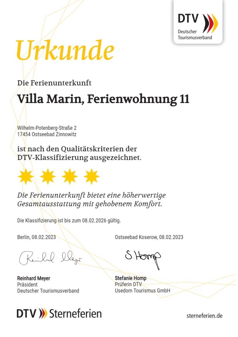 Die 68 m ² große und mit 4 DTV Sternen klassifizierte Ferienwohnung 11 befindet sich in der 1. Etage in der Villa Marin. Sie bietet mit ihren drei Zimmern ausreichend Platz für bis zu 6 Personen.