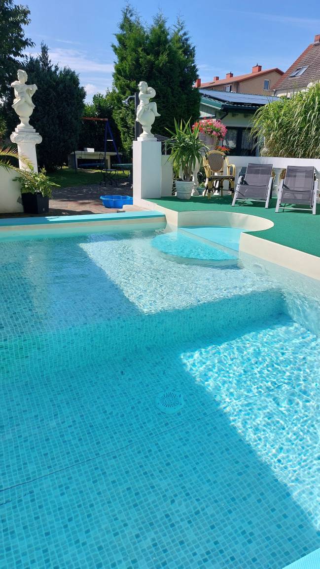 Zum Ferienhof Pommerngreif gehören mehrere Ferienwohnungen verschiedener Größe. Familienurlaub zu jeder Jahreszeit ist bei uns möglich. In den Sommermonaten ( ca. Mai - September) läd der Hof zum Verweilen ein. Auf dem Gelände gibt es verschiedene Sitzmöglichkeiten und Sonnenliegen, einen Pavillion zum Grillen und einen Selbstbedienungsbiertresen mit Fernseher. Gern wird dann natürlich unser Pool ( unbeheizt) im Garten genutzt. Für die kleinen Gäste gibt es eine Schaukel und eine Tischtennisplatte.