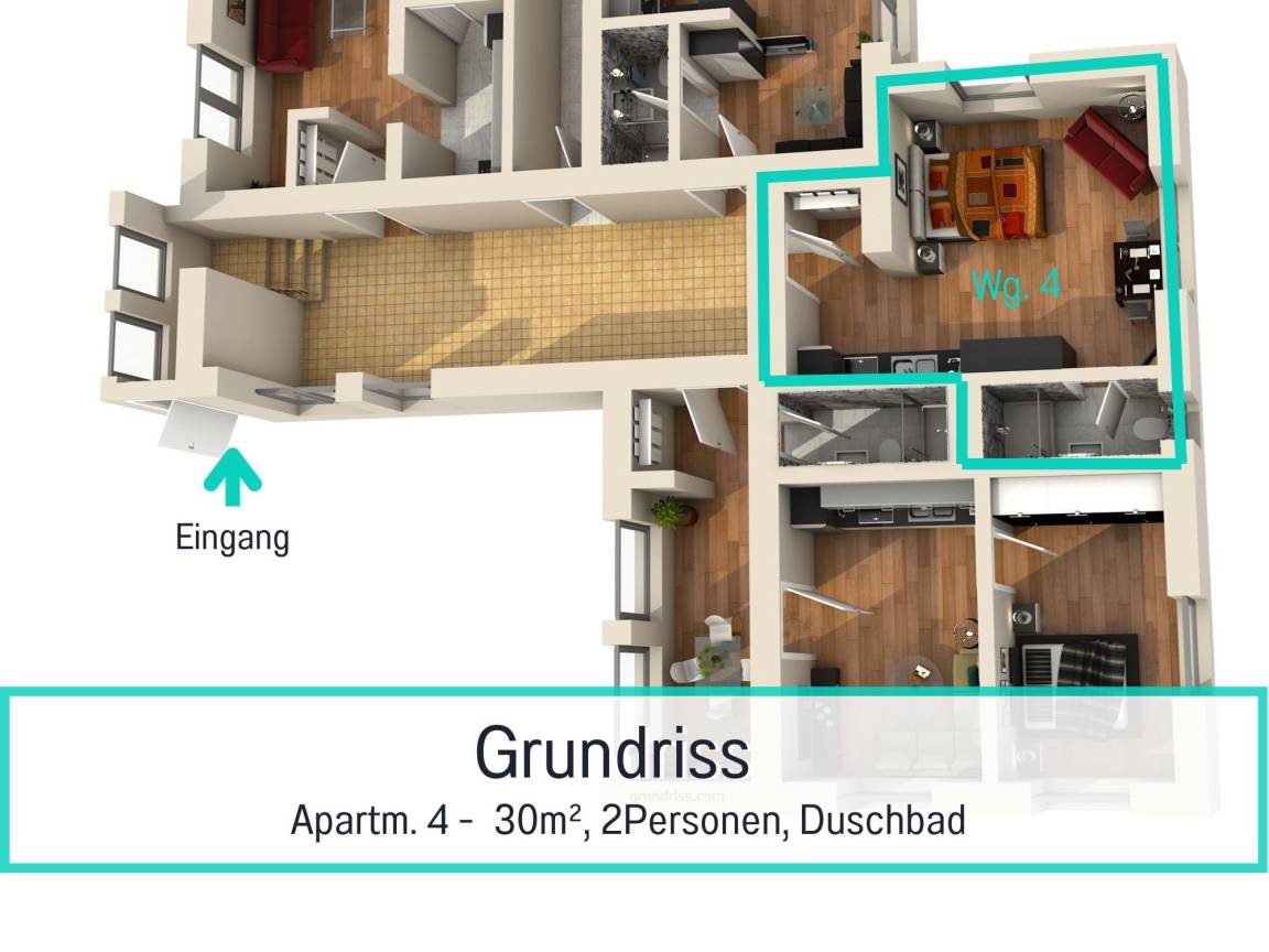 Apartment 4 ist ideal für bis zu zwei Personen und bietet eine gemütliche Küchenzeile, ein großes Doppelbett und ein modernes Bad mit Dusche ️