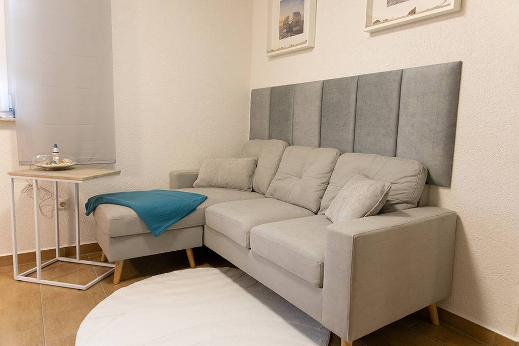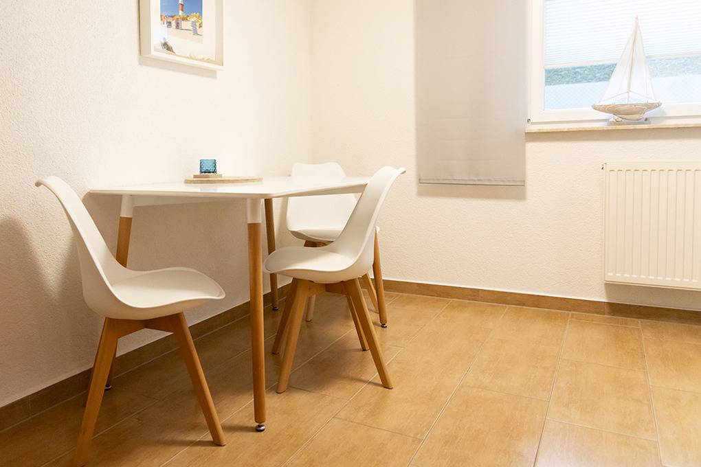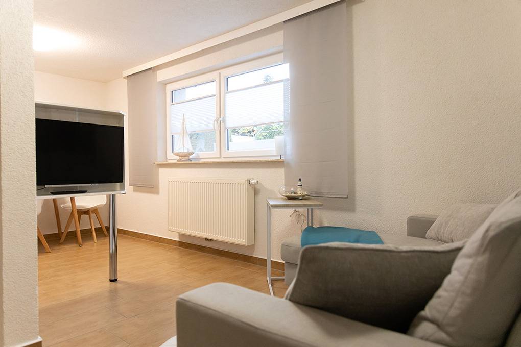 mit E-Bike-Ladestation sorgt für stressfreie Touren über die Insel. 3-Zimmerwohnung, 45 qm Wohnfläche. Souterrain. Wohn-/Essraum mit Esstisch, Einbauküche (Ceranfeld, Backofen, Gefrierschrank, Mikrowelle, Geschirrspülmaschine). Doppelzimmer. Einzelzimmer. Bad mit Dusche, WC.