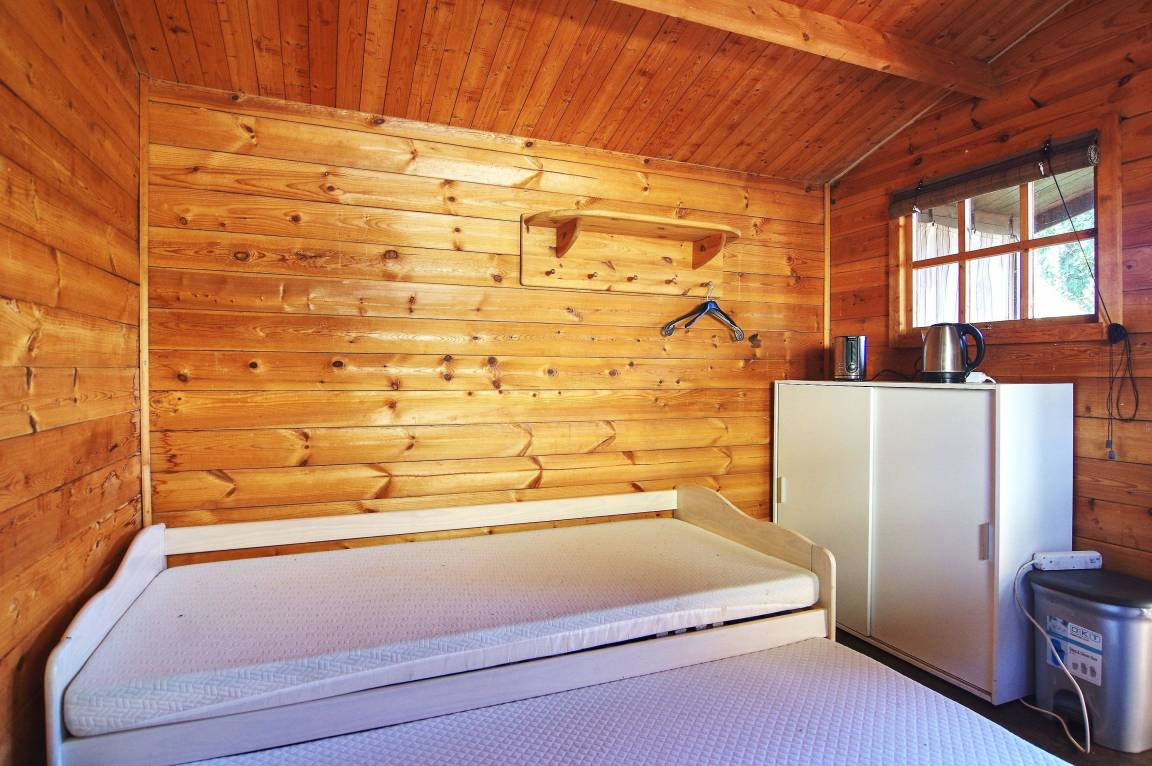 In dem knuffigen Ferienzimmer im Holzhaus finden Sie auf 9 qm zwar nicht viel Luxus aber doch alles, was Sie für einen gemütlichen Urlaub brauchen. Zwei bequeme Einzelbetten (Ausziehbatt (2x90x200) warten auf Sie und ihren Partner.