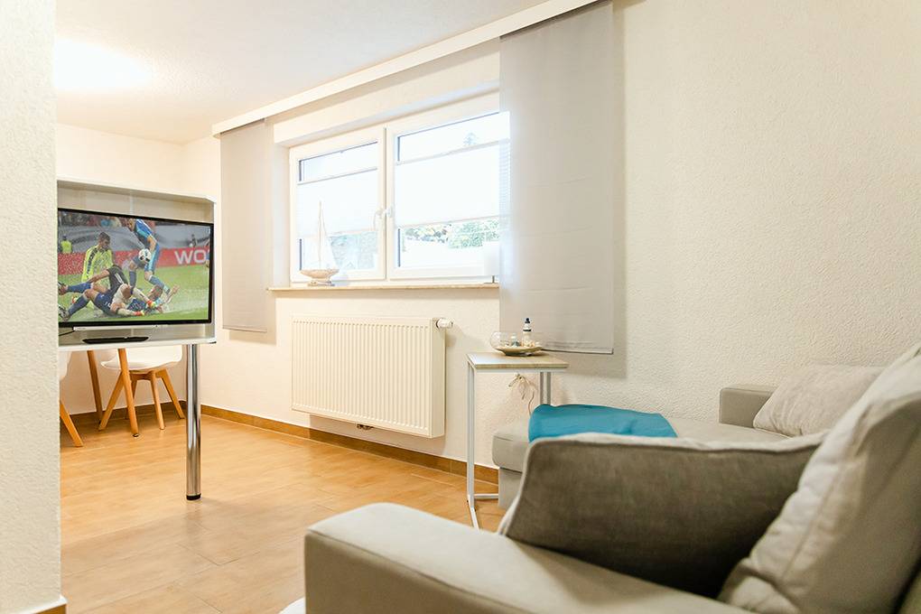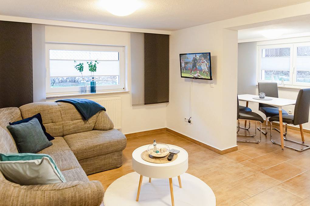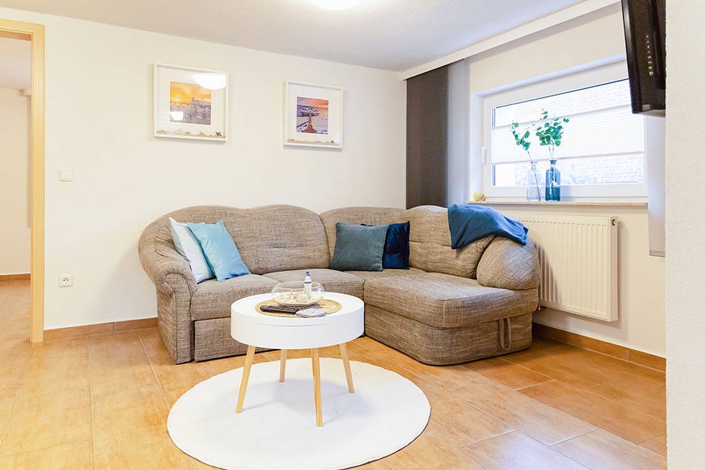 Haus: Schönes Mehrfamilienhaus mit 4 Ferienwohnungen im Souterrain, welche auch gemeisam vermietet werden . Alle Fewos mit TV, teilweise mit Spülmaschine. Gemeinschaftsraum mit großem Tisch für 10 Pers. Internet kostenlos über W-Lan. Zentralheizung. Nichtraucherwohnungen. Garten mit Sitzmöglichkeiten. Fahrradabstellraum mit Lademöglichkeit für E-Bikes.