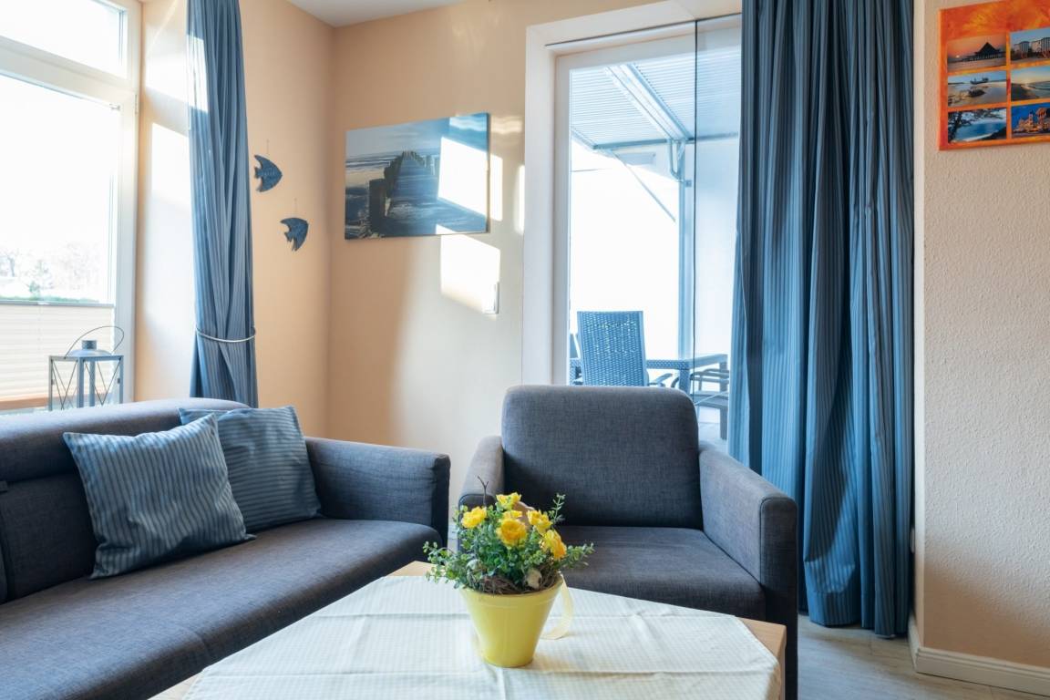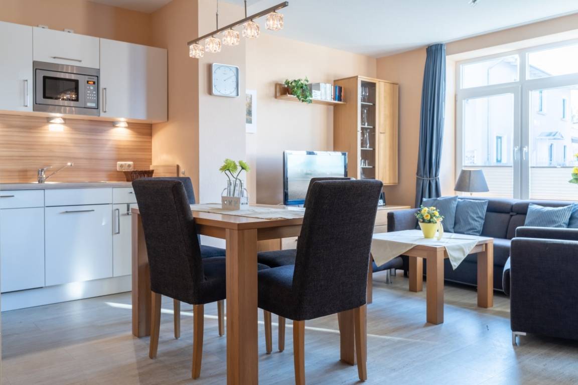 Die 52 m ² große und mit 4 DTV Sternen klassifizierte Ferienwohnung 02 befindet sich im Erdgeschoss in der Villa Marin. Sie bietet mit ihren zwei Zimmern ausreichend Platz für bis zu 4 Personen.