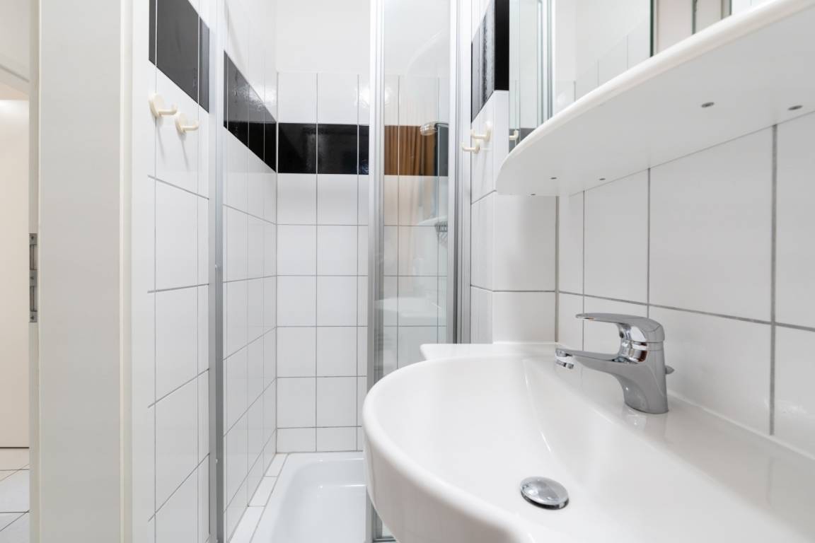 Die hier angrenzende Küchenzeile ist mit einem Kühlschrank mit Gefrierfach, einem Geschirrspüler und einem Backofen mit Cerankochfeld ausgestattet. Eine Kaffeemaschine, ein Toaster und ein Wasserkocher stehen Ihnen hier selbstverständlich zur Verfügung.