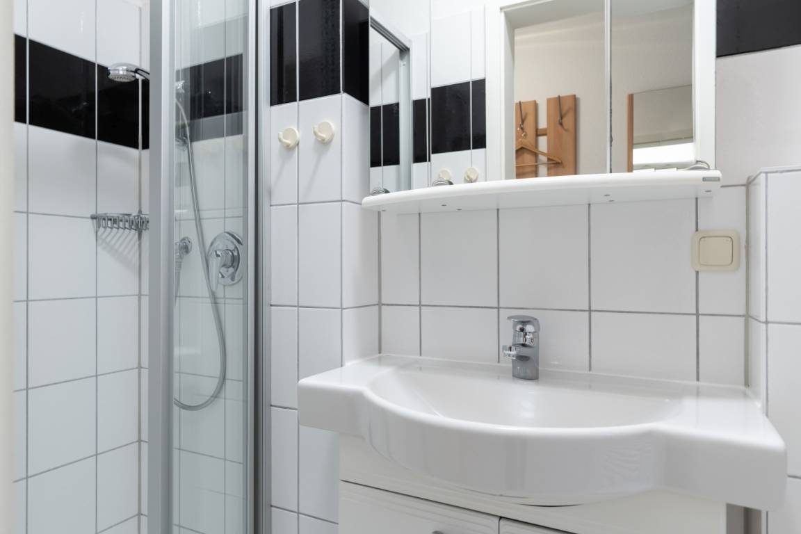 Die 36 m ² große Ferienwohnung 03 befindet sich im Erdgeschoss im Haus Roland (rechtes Gebäude vom Parkplatz aus gesehen). Sie bietet mit ihren zwei Zimmern ausreichend Platz für bis zu 4 Personen.