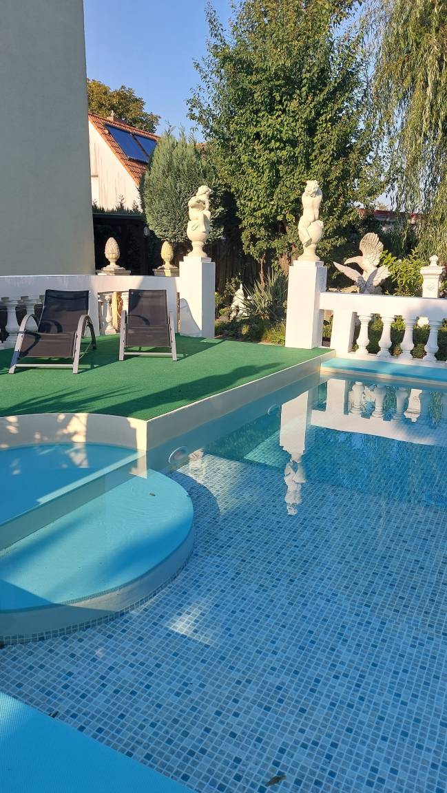 Zum Ferienhof Pommerngreif gehören mehrere Ferienwohnungen verschiedener Größe. Familienurlaub zu jeder Jahreszeit ist bei uns möglich. In den Sommermonaten ( ca. Mai - September) läd der Hof zum Verweilen ein. Auf dem Gelände gibt es verschiedene Sitzmöglichkeiten und Sonnenliegen, einen Pavillion zum Grillen und einen Selbstbedienungsbiertresen mit Fernseher. Gern wird dann natürlich unser Pool im Garten genutzt. Für die kleinen Gäste gibt es eine Schaukel und eine Tischtennisplatte.