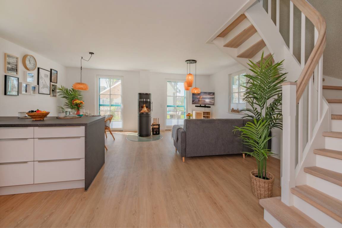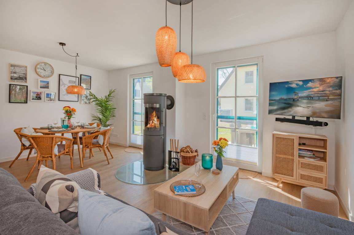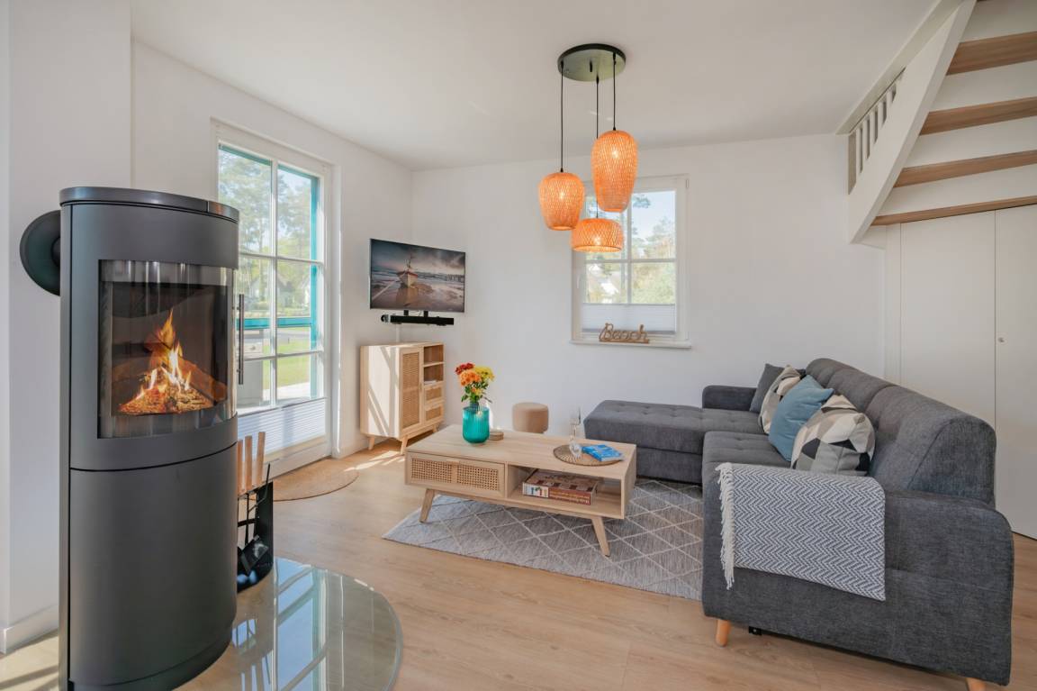 Auch im Wohnzimmer lädt die gemütliche Couch vor dem Smart-TV dazu ein, sich zu entspannen und Ihre Lieblingsfilme und -serien zu genießen. Im Beach House steht Ihnen dafür ein Netflix-Account zur Verfügung. An kälteren Tagen können Sie zusätzlich vor dem knisternden Kamin verweilen.