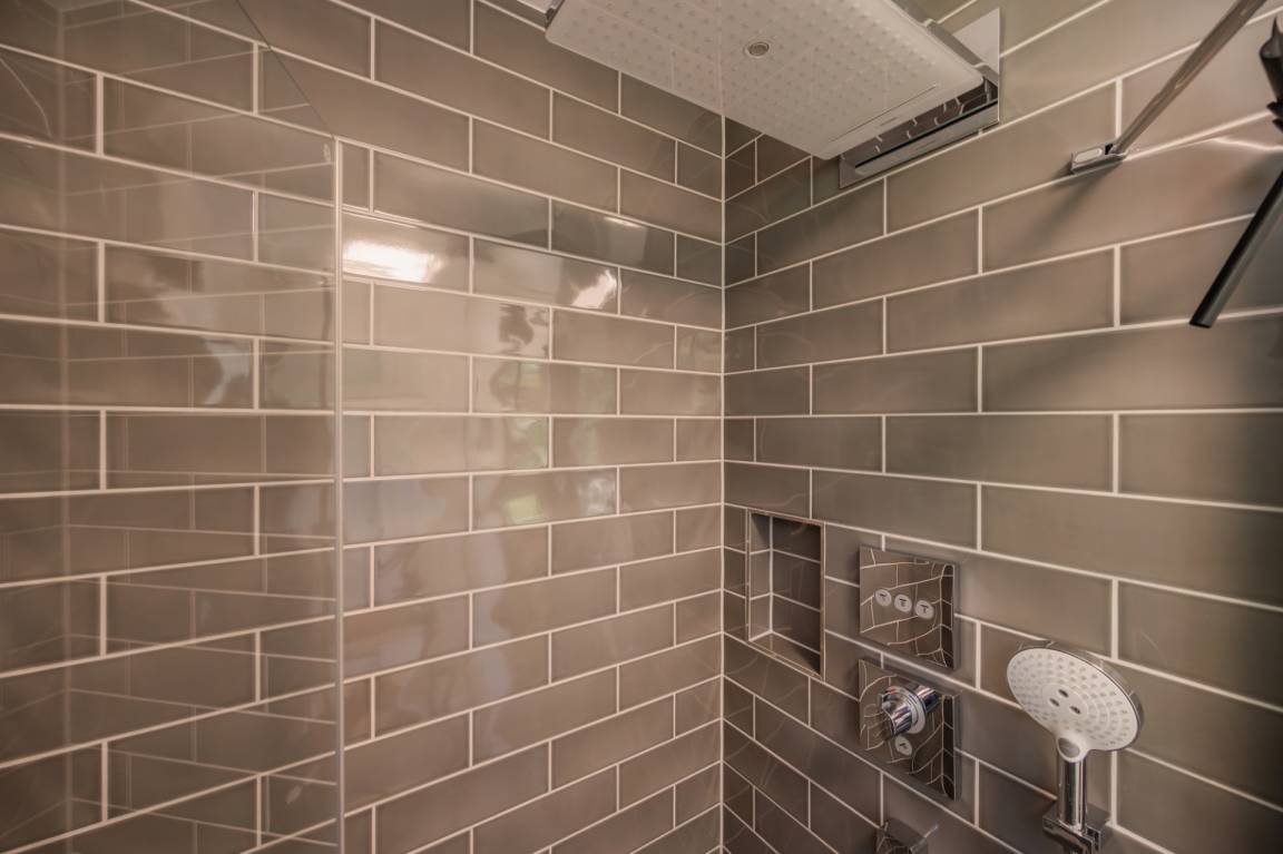 Die Regendusche, ein Waschbecken mit Unterschrank für Ihre Kosmetik, sowie ein Hotelföhn, runden die moderne und komfortable Ausstattung ab.