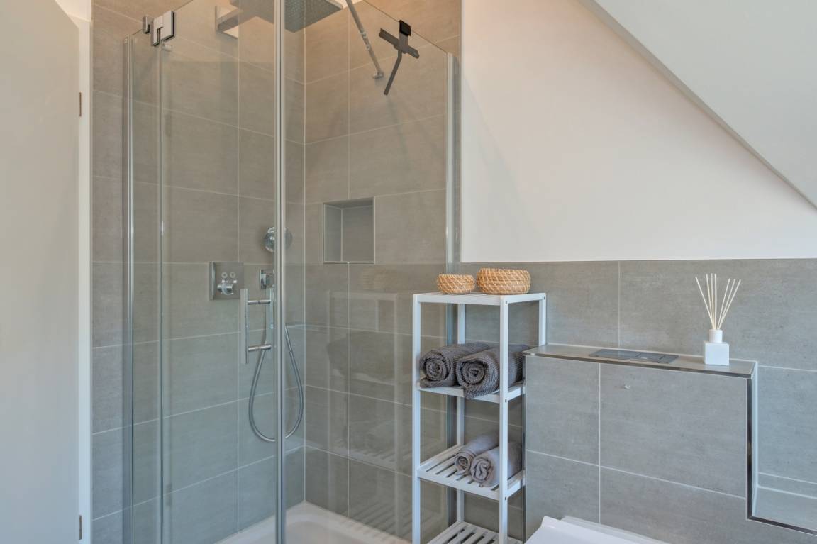 Zudem erwartet Sie im Obergeschoss ein wunderschönes Tageslichtbad mit einer unter der Fledermausgaube perfekt platzierten Badewanne für zwei - für einzigartige Entspannungsmomente unter Reet.