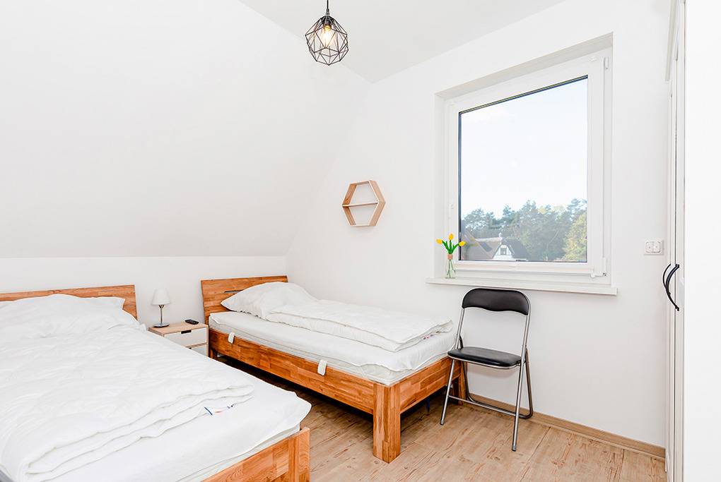 Haus: Großzügig angelegte Ferienhausanlage auf großem gepflegtem Areal (10 ha) mit lichtem Baumbestand. In unmittelbarer Nähe zum Hochufer gelegene hochwertige, reetgedeckte Ferienhaushälfte mit Kaminofen. 2 separate Schlafzimmer, 2 Bäder. Gehobene Ausstattung mit geschmackvoller Möblierung. Zentralheizung. Kostenloser Internetzugang über W-Lan. Terrasse mit Sitzmöbeln, Grill. Abstellraum mit 2 Fahrrädern. 1 Pkw-Stellplatz.