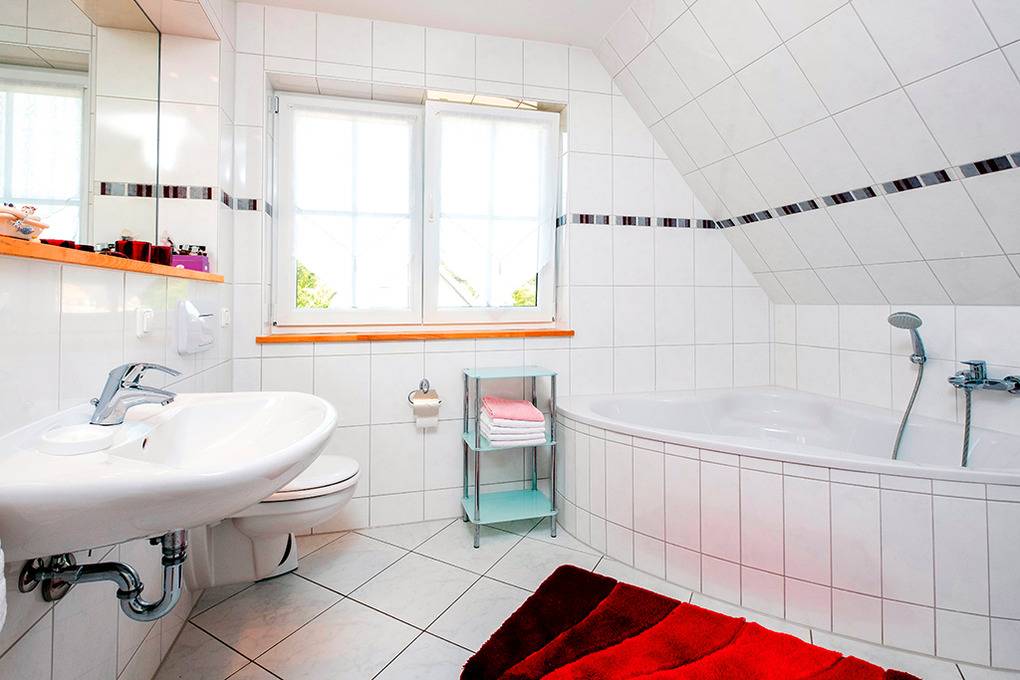 D 28.30C Ferienhaus 2-4 Pers.: Exklusives 3-Zimmerhaus mit 91 qm Wohnfläche über 2 Etagen (Nichtraucherhaus). Parterre: Gemütlicher Wohn-/Essraum mit Kaminofen, Couchgarnitur, Flachbild-Sat-TV, Esstisch, moderner Einbauküche (4 Pl. E-Herd, Mikrowelle, Spülmaschine). Bad: Du, Wb, WC. 1. Etage (leichte Dachschrägen): Doppelzimmer. 2-Bettzimmer. Großes Bad: Rund-Bw, Wb, WC, Waschmaschine.