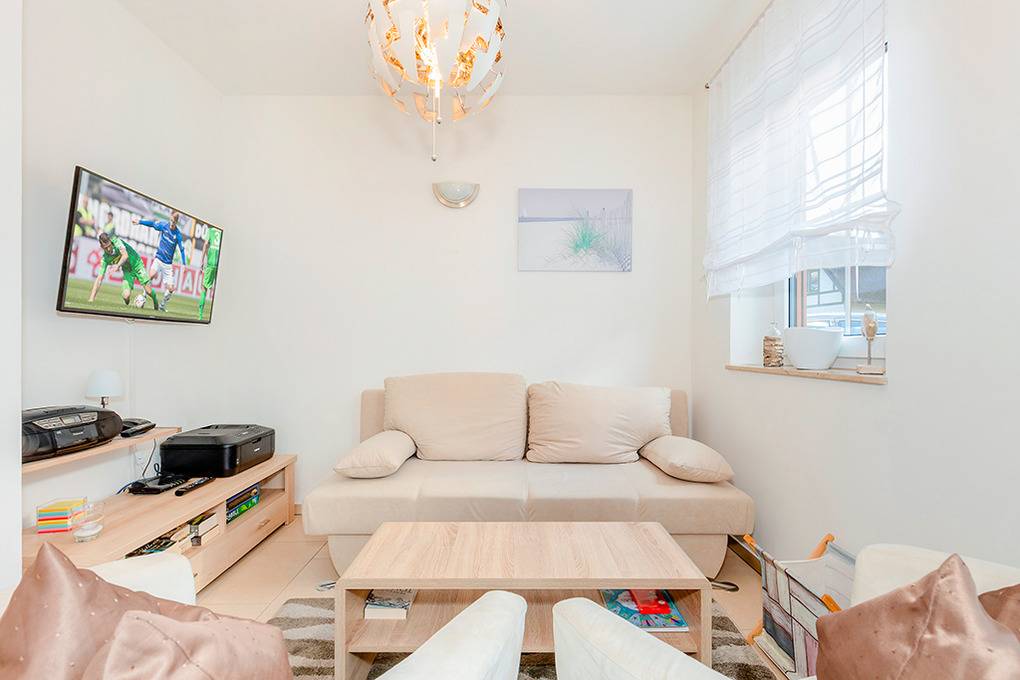 Nebenkosten: Endreinigung 103 € (wird bei Buchung erhoben). Bettwäsche, Handtücher leihbar 26 €/Pers (Bestellung, wird bei Buchung erhoben). Zusätzliche Leistungen: 2 Pkw-Stellplätze im Preis inklusive. Kostenloser Internetzugang über W-Lan. Kaution 200 €. Kinder Hochstuhl ohne Berechnung. Haustier nicht erlaubt.Räume & Aufteilung