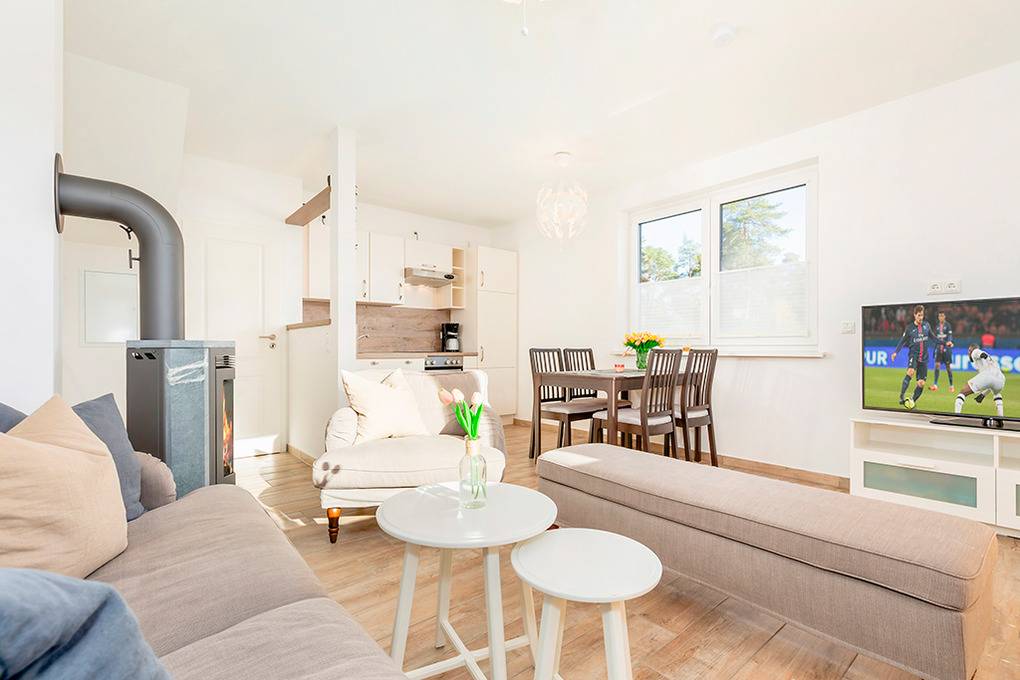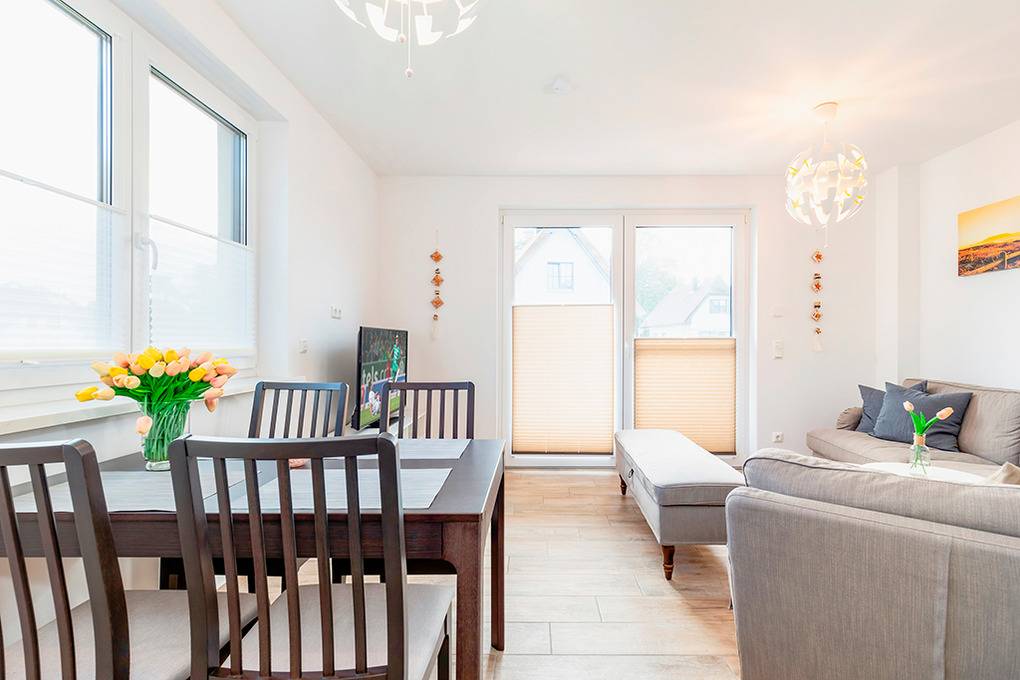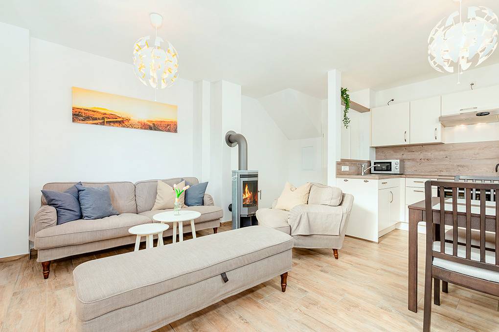 Nebenkosten Endreinigung 130 € (wird bei Buchung erhoben) . Bettwäsche, Handtücher leihbar 20 €/Pers (Bestellung, wird bei Buchung erhoben). Zusätzliche Leistungen Kostenloser Internetzugang über W-Lan. 1 Pkw-Stellplatz im Preis inklusive. Kaution 200 € (wird bei Buchung erhoben). Kinder Babybett zusätzlich zur maximalen Personenzahl ohne Berechnung. Haustier nicht erlaubt.Räume & Aufteilung