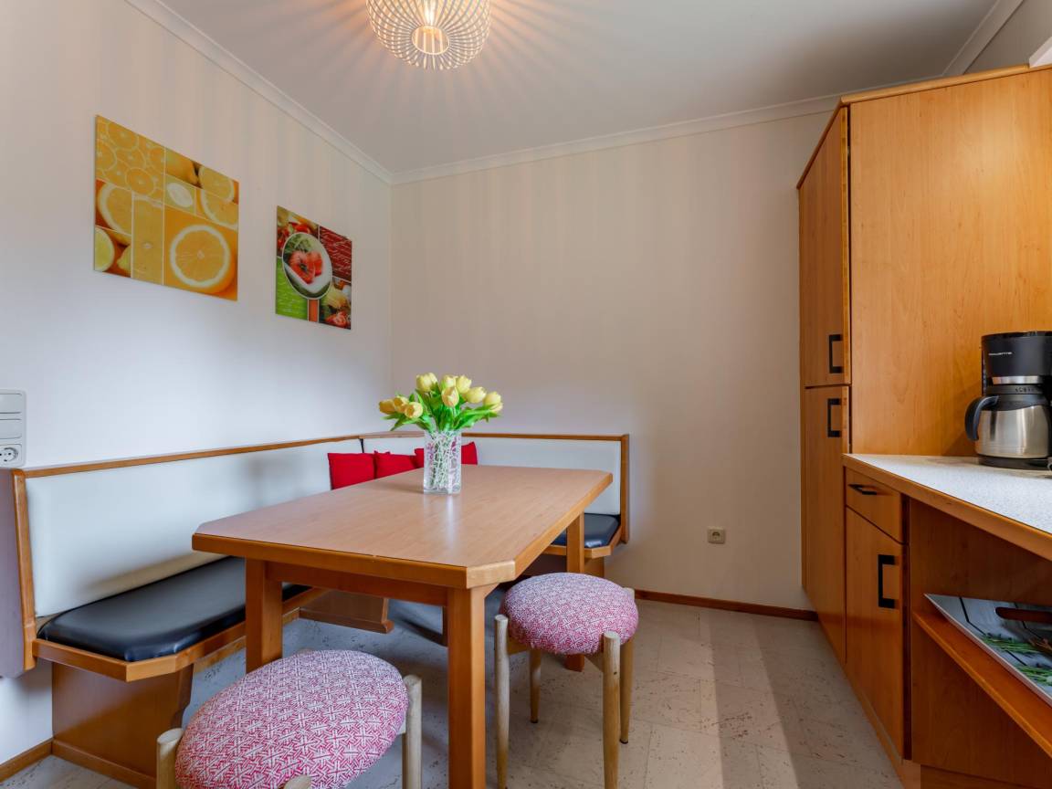 Layout : Parterre: Eingang, Wohnzimmer mit TV(Flatscreen), Esstisch(6 Personen), Sitzecke , Küche mit Sitzecke(4 Personen), Kochplatte(4 Kochplatten, Ceranfeld), Wasserkocher, Dunstabzugshaube, Kaffeemaschine(cups), Backofen, Mikrowelle, Geschirrspüler, Kühlschrank , Toilette mit Toilette