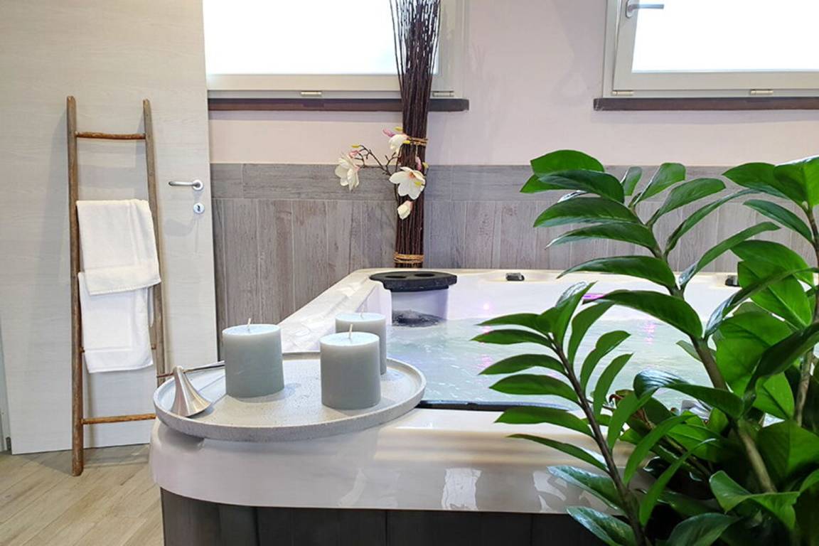Wellnessbereich: Heißwasser-Whirlpool im Haus.