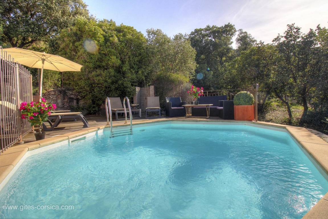 - Sechseckiger Privatpool (14 m² Tiefe 1,4 m), der während der gesamten Mietzeit geöffnet ist und durch eine Sicherheitsbarriere gesichert ist Der Zugang zum Pool ist nur den im Mietvertrag vorgesehenen Personen gestattet.