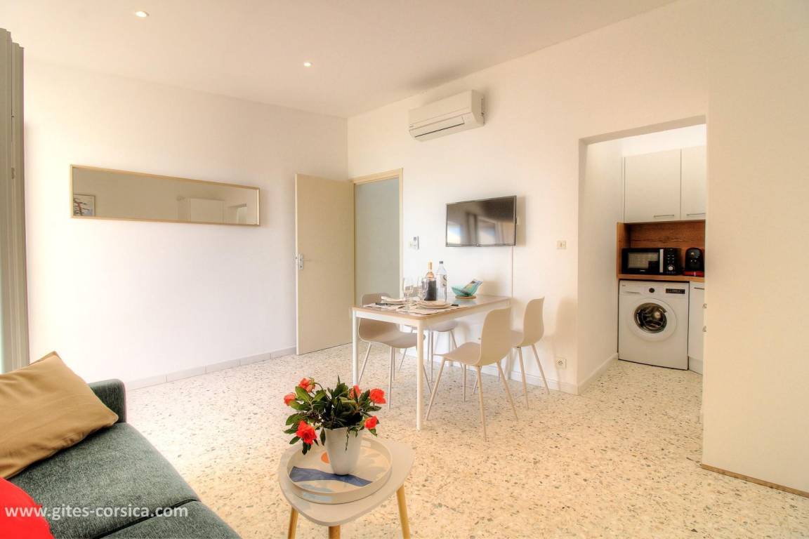 „Un appartement très fonctionnel dans une des baies les plus agréables de Corse avec sa terrasse et la vue sur la baie et sa tour Génoise des le réveil !“