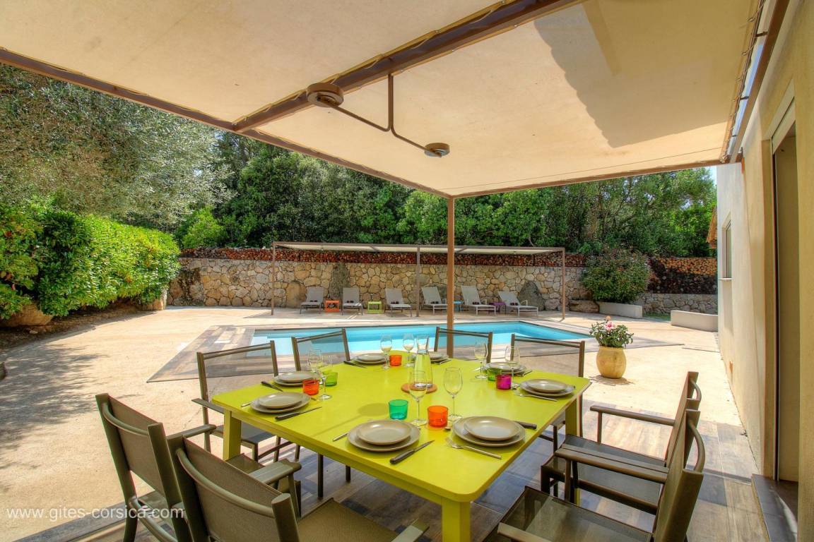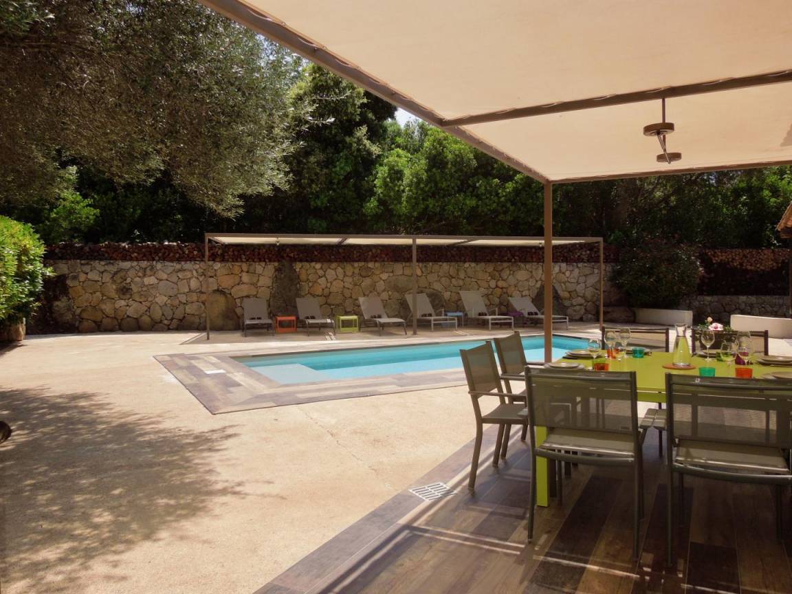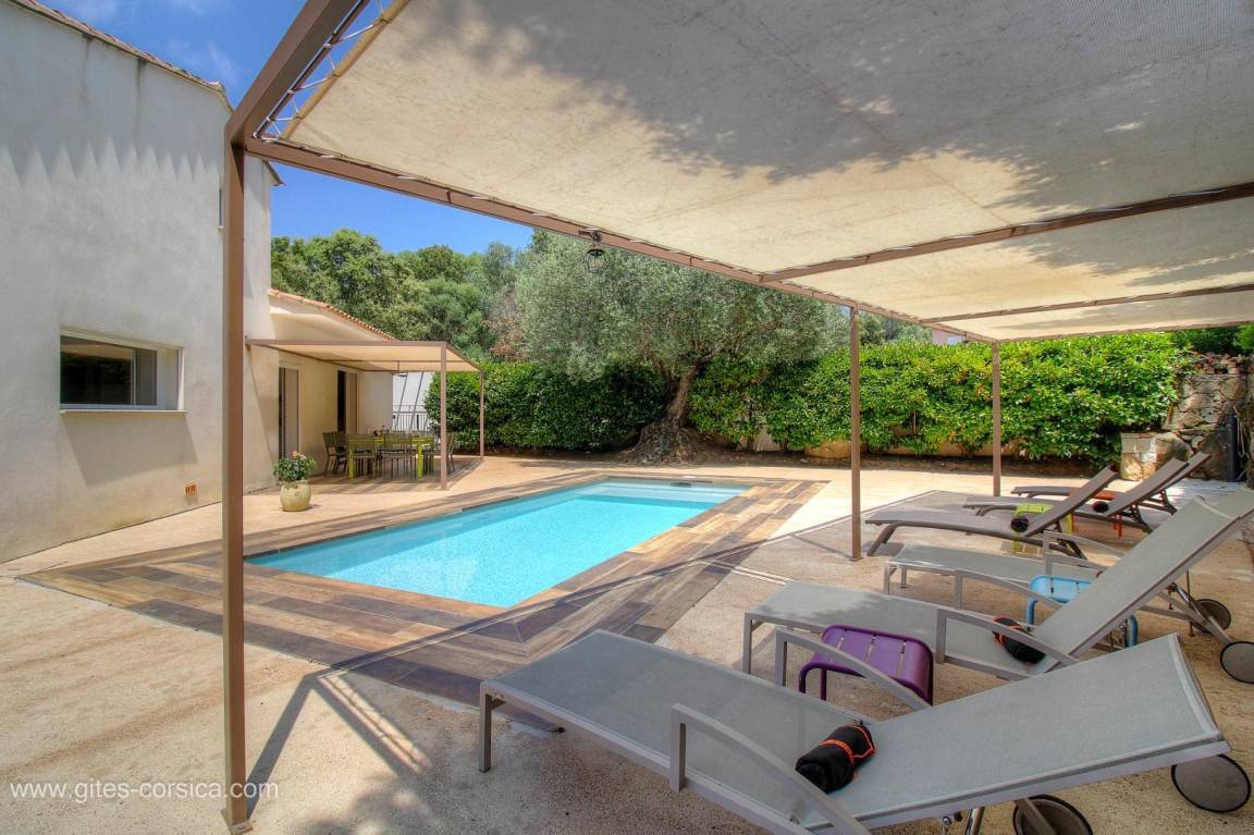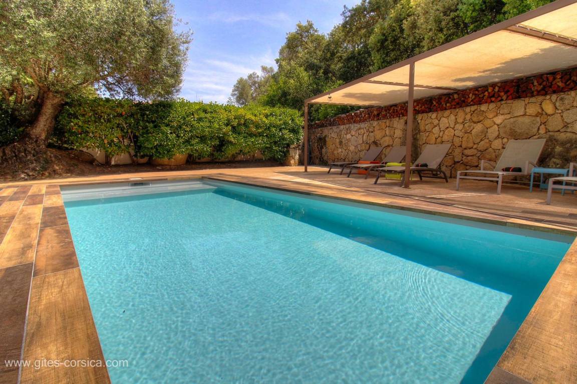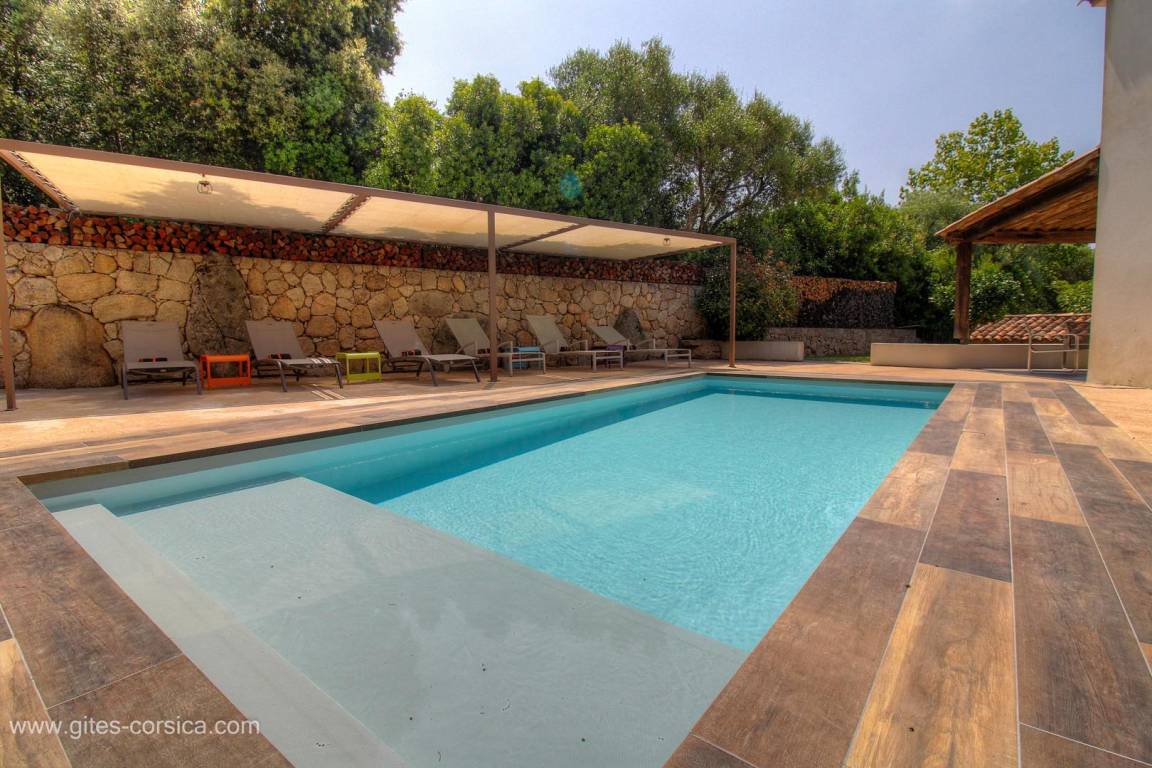 - Privater Pool (3x7m, Tiefe 1,10m), der während der gesamten Mietzeit geöffnet ist und durch einen akustischen Alarm gesichert ist, mit einem schattigen Entspannungsbereich von 27m². Der Pool steht ausschließlich den Mietern zur Verfügung.