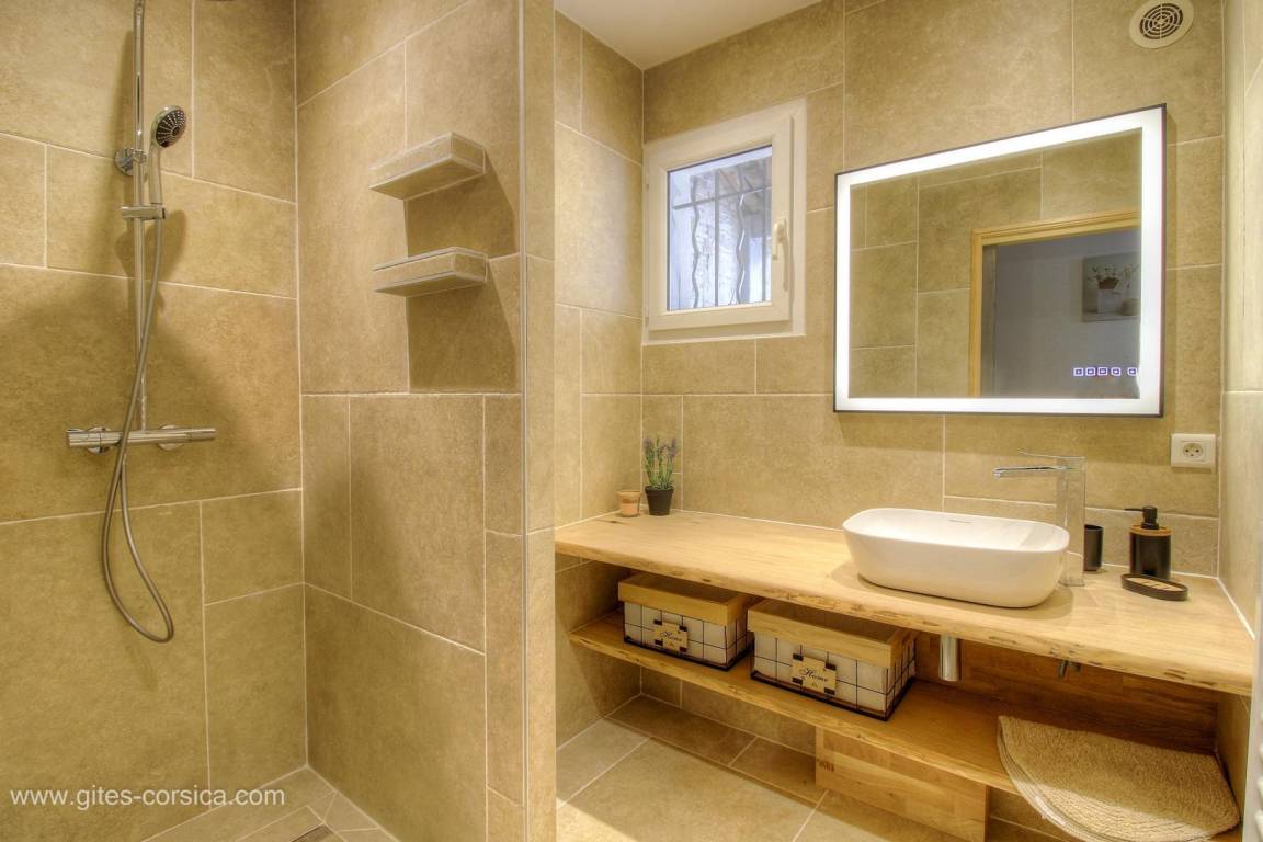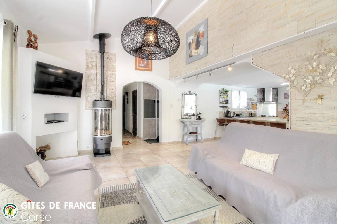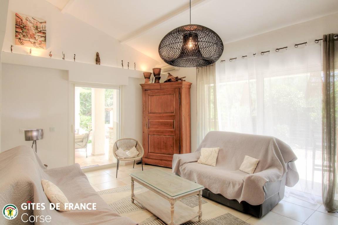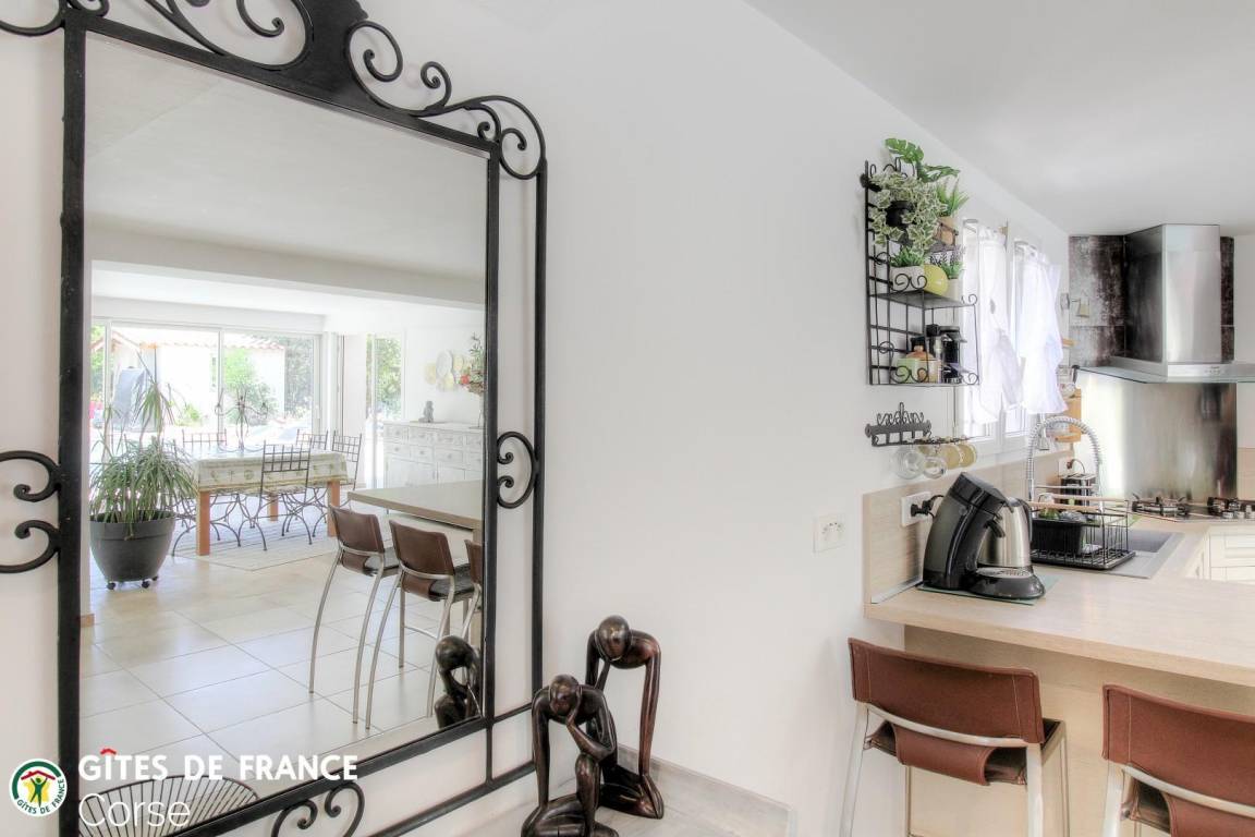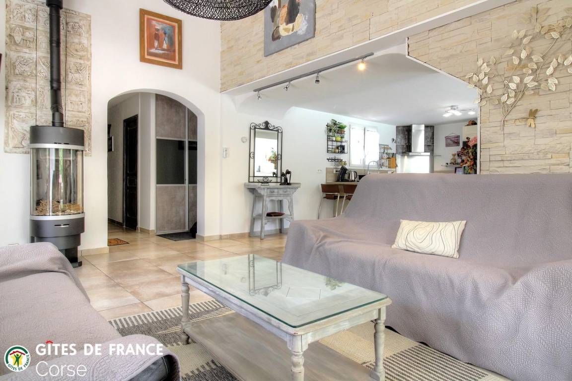 3,3 km vom Strand von Pinarello entfernt, Ferienhaus von 95 m² im Erdgeschoss eines unabhängigen Hauses, das auch die Wohnung der Eigentümer umfasst, setzt es sich wie folgt zusammen: