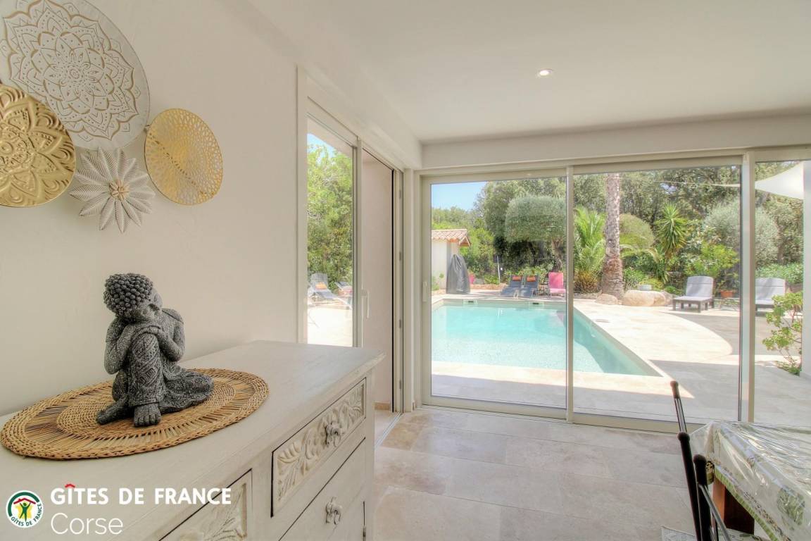 - Privates Schwimmbad (8x4 m, Tiefe 1,3 m bis 1,8 m), das während der Mietzeit geöffnet ist und durch einen akustischen Alarm gesichert ist. Der Pool steht ausschließlich den Mietern zur Verfügung.
