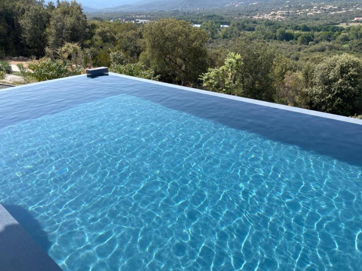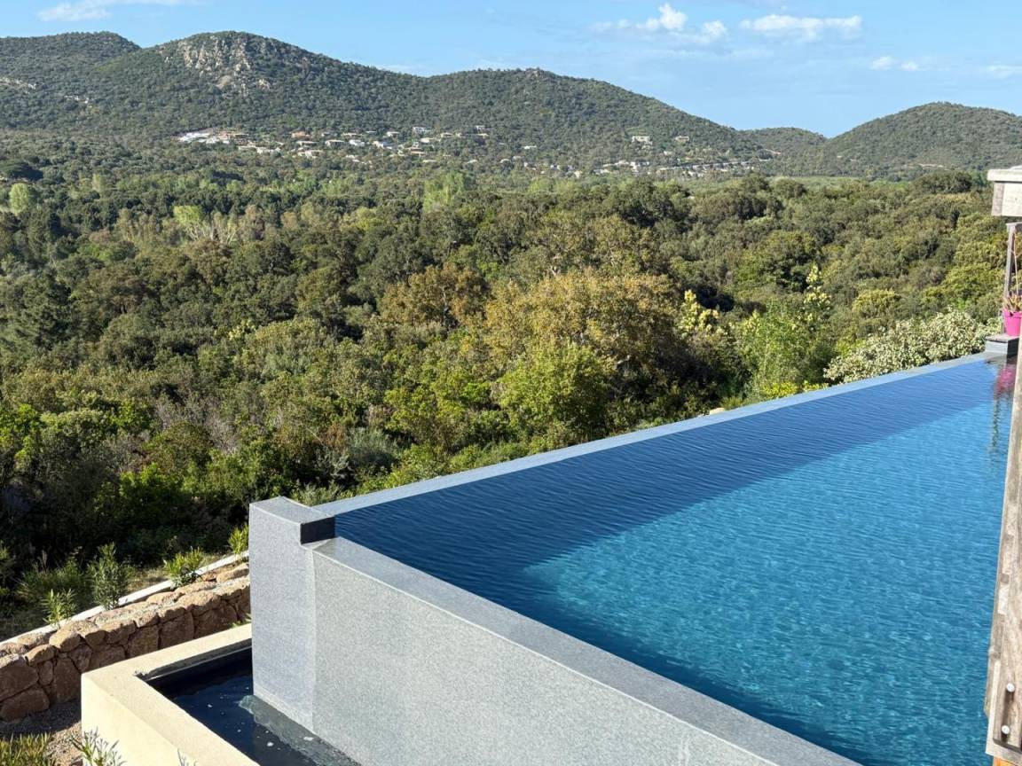 - Privater Pool mit Überlaufrinne unterhalb der Terrasse (8x4 m, Tiefe: 1,5 m), der während der gesamten Mietzeit geöffnet ist, von Anfang Juni bis Ende Juni und von Anfang September bis Ende Oktober beheizt wird und durch ein Tor gesichert ist. Der Pool steht den Mietern zur alleinigen Nutzung zur Verfügung.