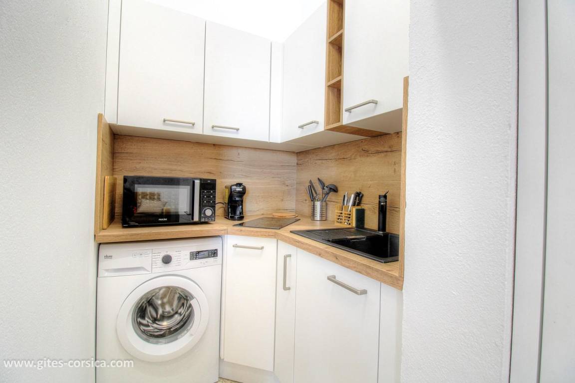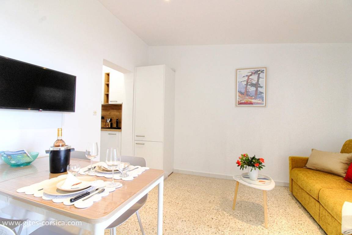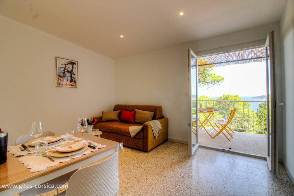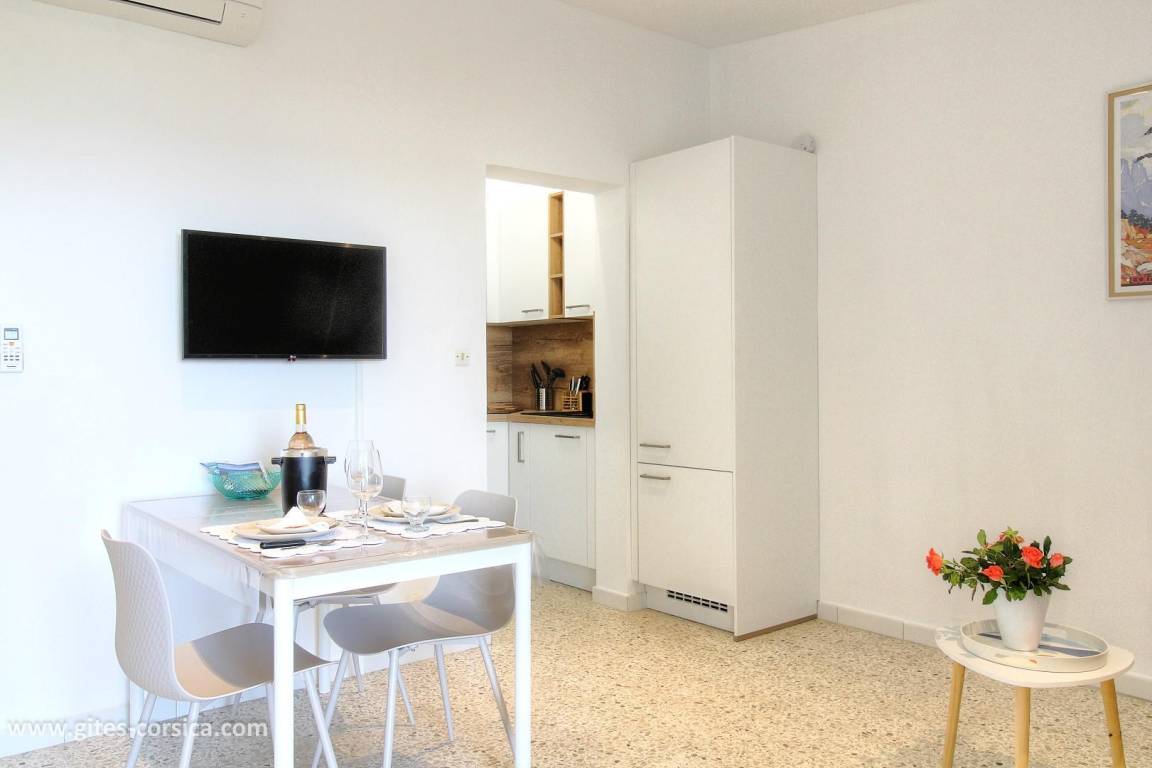 „L'appartement est très bien situé et très agréable, et la vue est tout simplement magnifique !La plage, qui n'a rien à envier aux autres plus connues du Sud de la Corse, se trouve à quelques minutes à pied et tous les commerces (boulangerie, boucherie, supermarché...) sont accessibles rapidement en voiture. Petit plus: La plancha mise à disposition !“