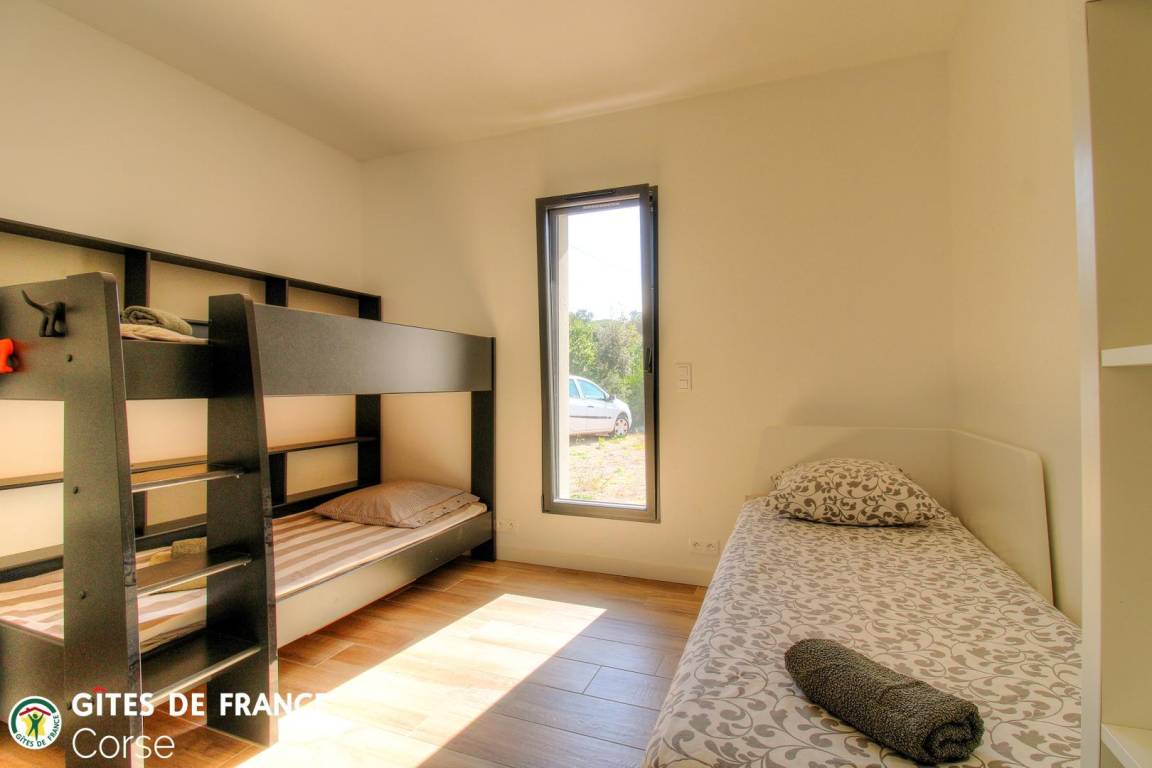 - 1 Schlafzimmer mit 2 Etagenbetten 90x190 cm und 2 Ausziehbetten 90x190 cm.