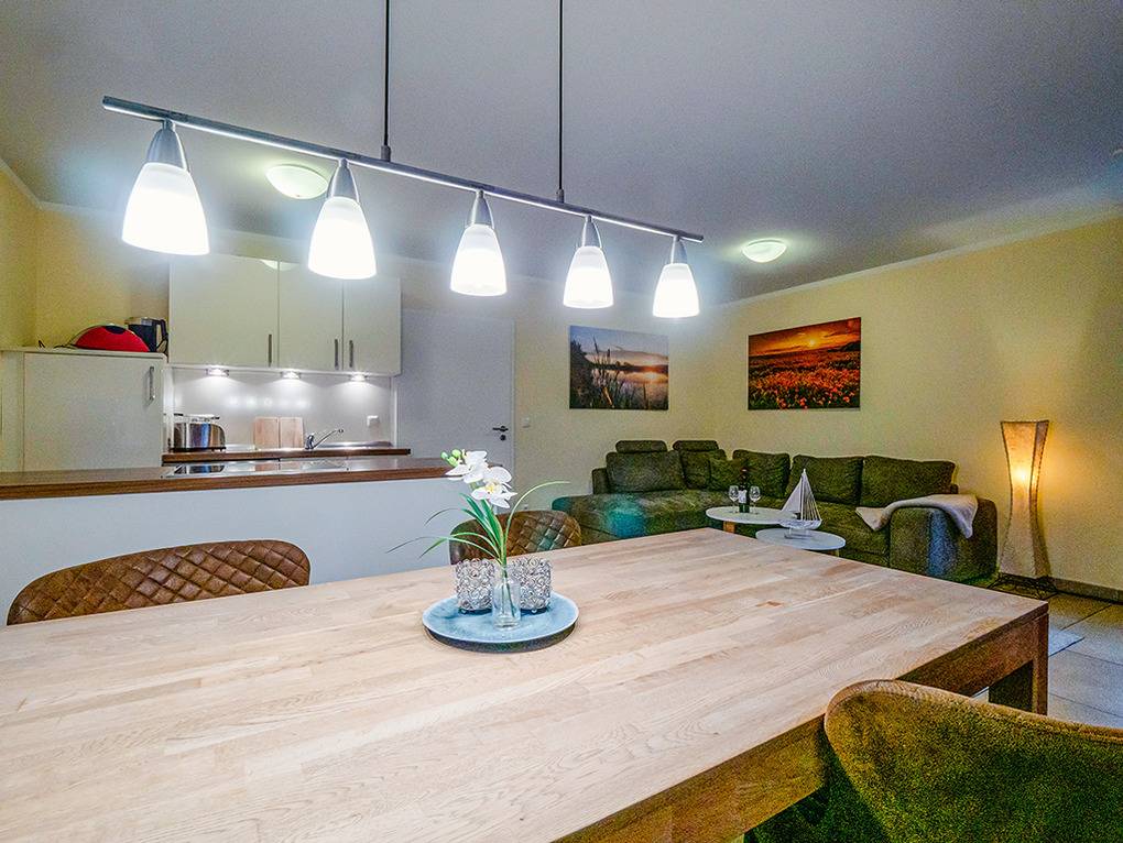 Nebenkosten 3 €/Pers./Tag (werden bei Buchung erhoben). Endreinigung 120 € (wird bei Buchung erhoben). Kurtaxe. Bettwäsche stellt der Vermieter 12 €/Pers (wird bei Buchung erhoben). Handtücher leihbar 12 €/Pers (Bestellung, wird bei Buchung erhoben). Zusätzliche Leistungen Kanu vorhanden, Nutzung inklusive. 2 Pkw-Stellplätze im Preis inklusive. Kostenloser Internetzugang über W-Lan. Kinder Babybett/Hochstuhl zusätzlich zur maximalen Personenzahl, jeweils ohne Berechnung. Haustier 5 €/Tag, max. 2 Hunde (Anmeldung, wird bei Buchung erhoben).Räume & Aufteilung