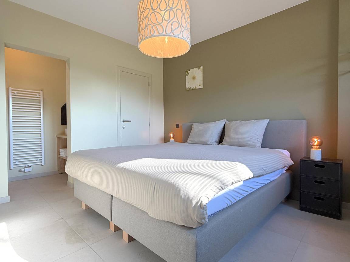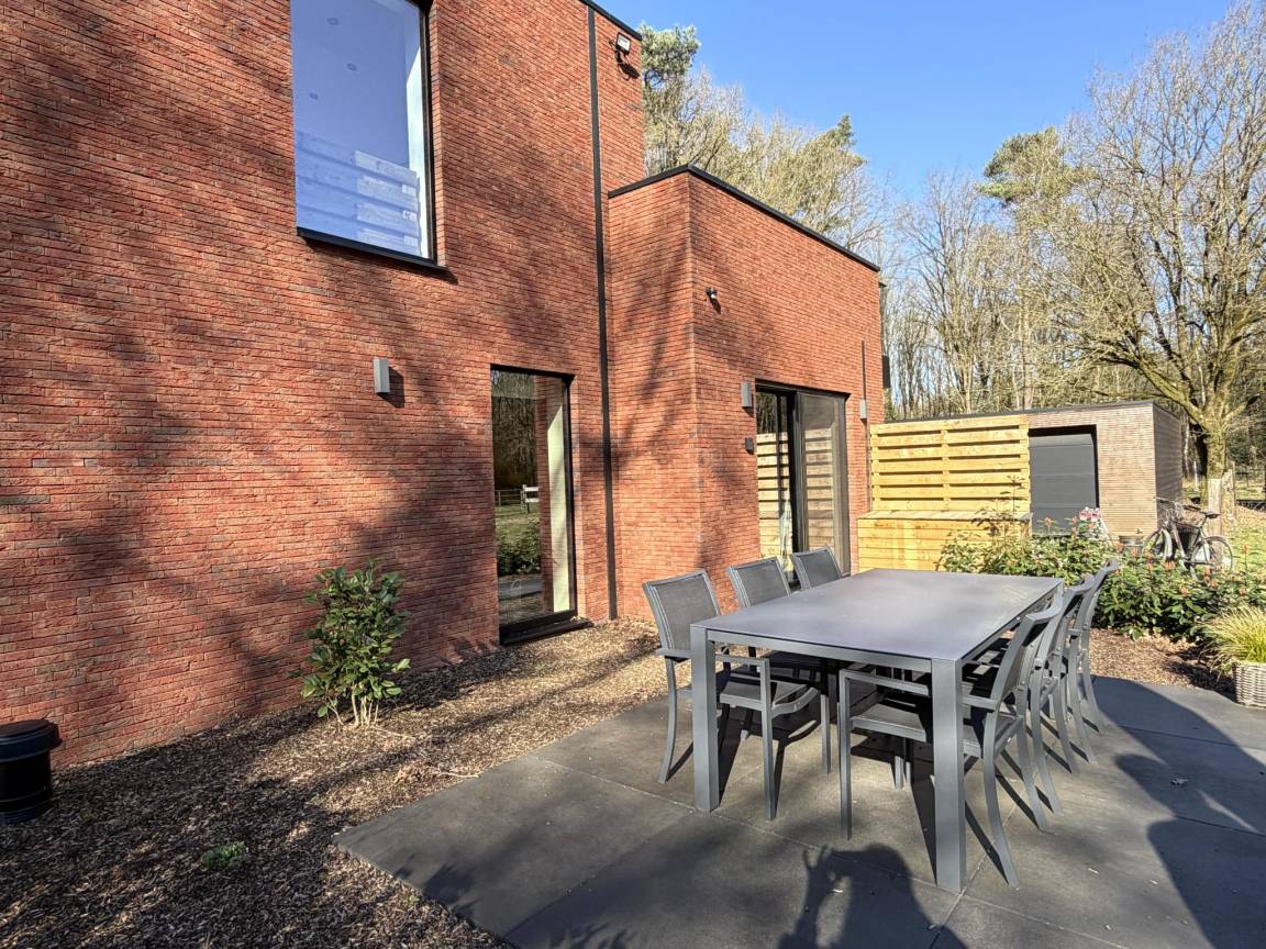 Hausbeschreibung : Huus 16 ist ein stilvolles Ferienhaus im Grünen von Zutendaal, ganz in der Nähe des Nationalparks Hoge Kempen. Das Haus kombiniert Komfort mit einer warmen, modernen Einrichtung. Große Fenster sorgen für viel Licht und einen schönen Blick auf die umliegende Natur und die Pferdeweiden. Genießen Sie die Ruhe auf der Terrasse oder machen Sie sich auf zu einem Spaziergang oder einer Radtour in die wunderschöne Umgebung. Der ideale Ort, um gemeinsam zu entspannen.