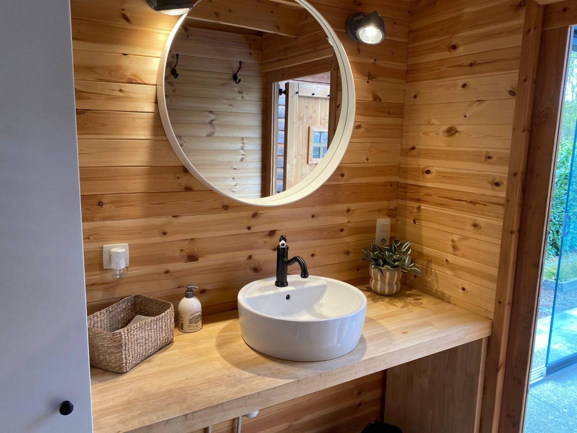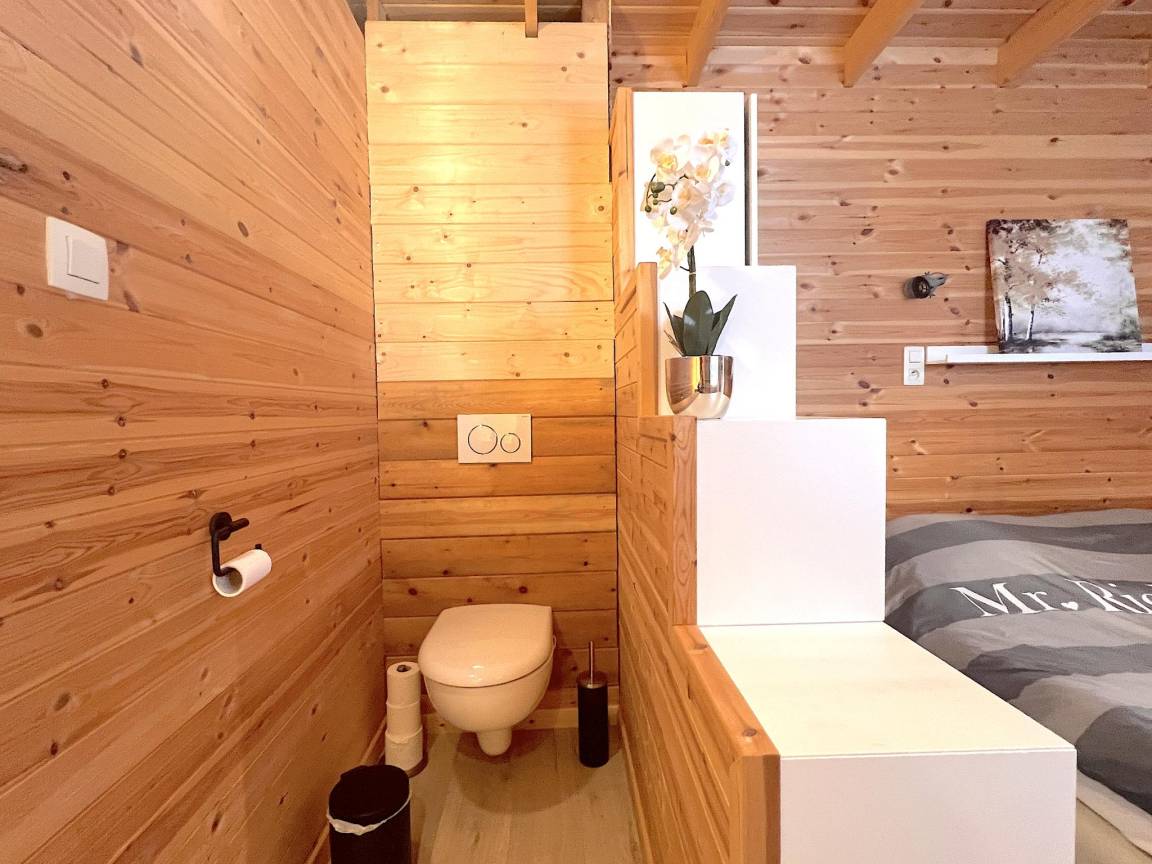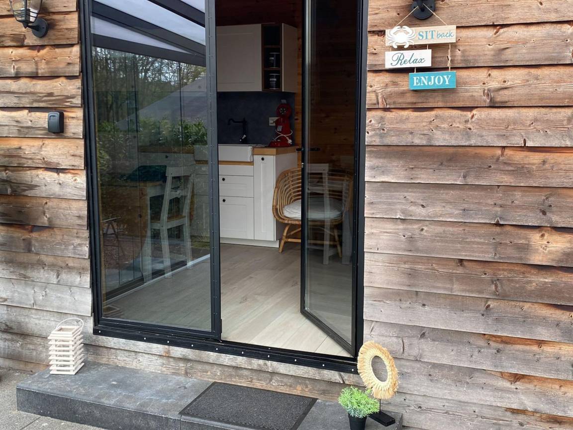 „Schönes Chalet, geräumig genug für 2 Personen. Alles, was Sie brauchen, ist da. Genau wie in der Beschreibung und Fotos. Schöne bewaldete Gegend, ruhiger Chaletpark. In der Nähe von Fahrradknotenpunkten. Zu wiederholen“