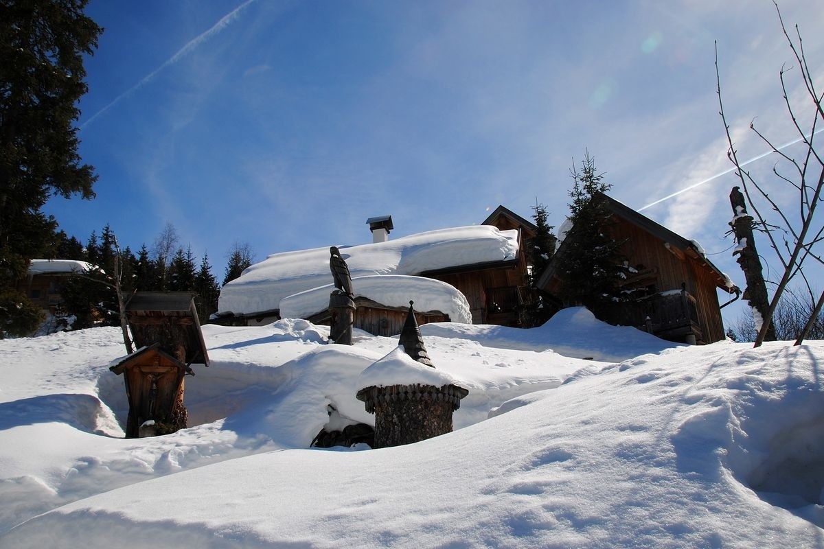 ✨ Highlights: Naturholz-Hütten direkt an der Skipiste, private Sauna, gemütliche Wohnstube mit Schwedenofen, Sonnenterrasse, haustierfreundlich.