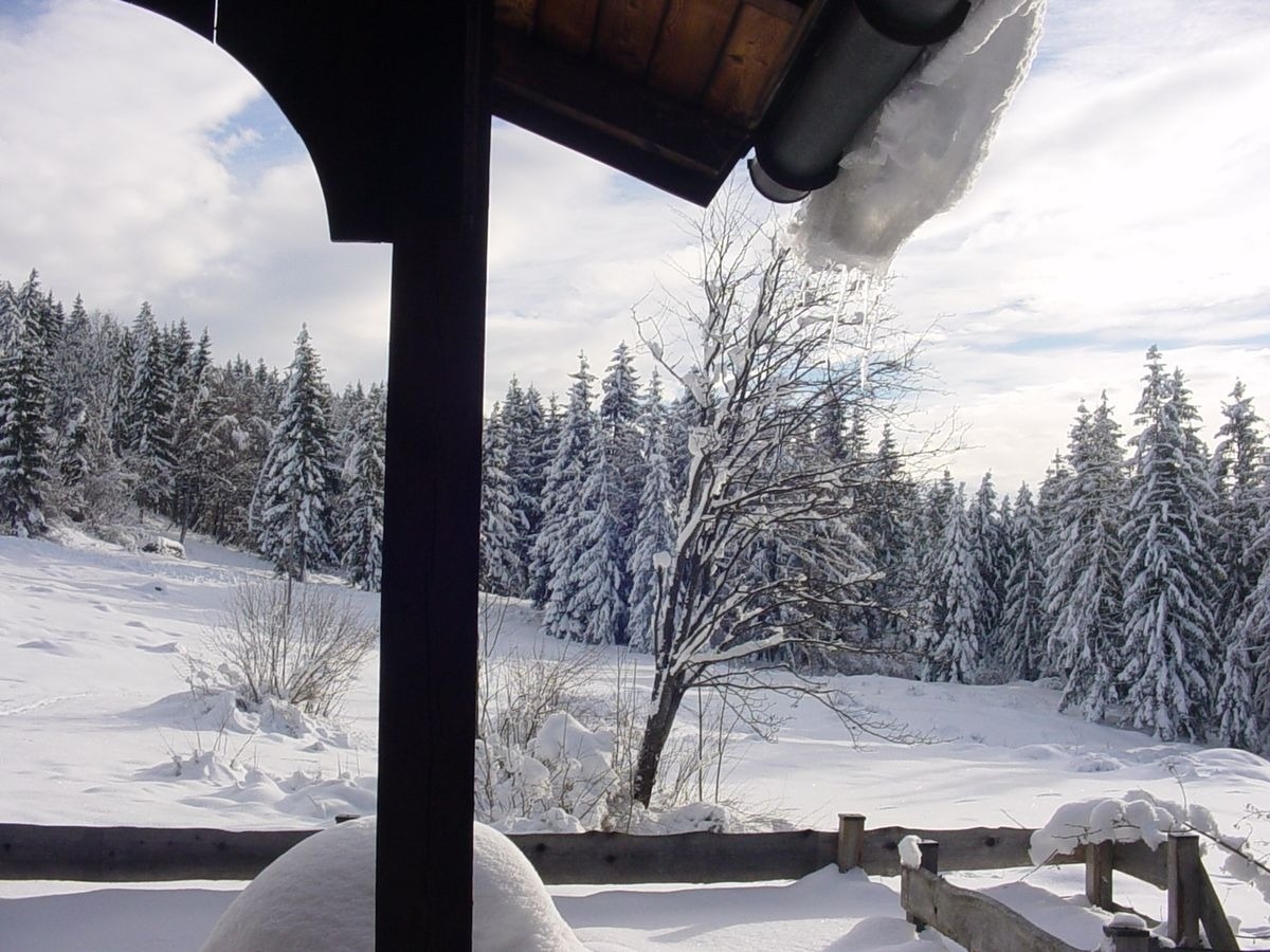 Der Außenbereich der Hütte lädt zum Entspannen ein: