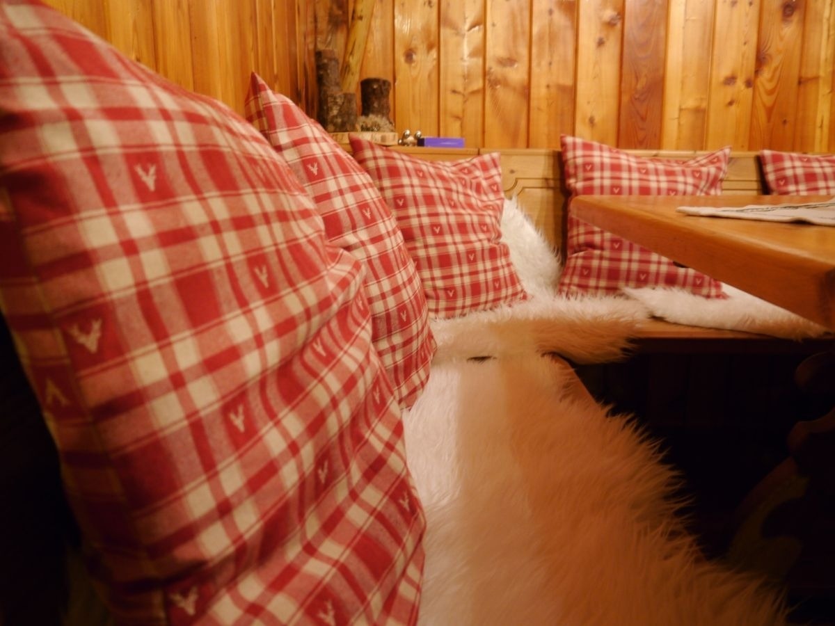 Die Wohnstube mit Couch, Esstisch, Eckbank und SAT-TV sorgt für behagliche Hüttenabende.