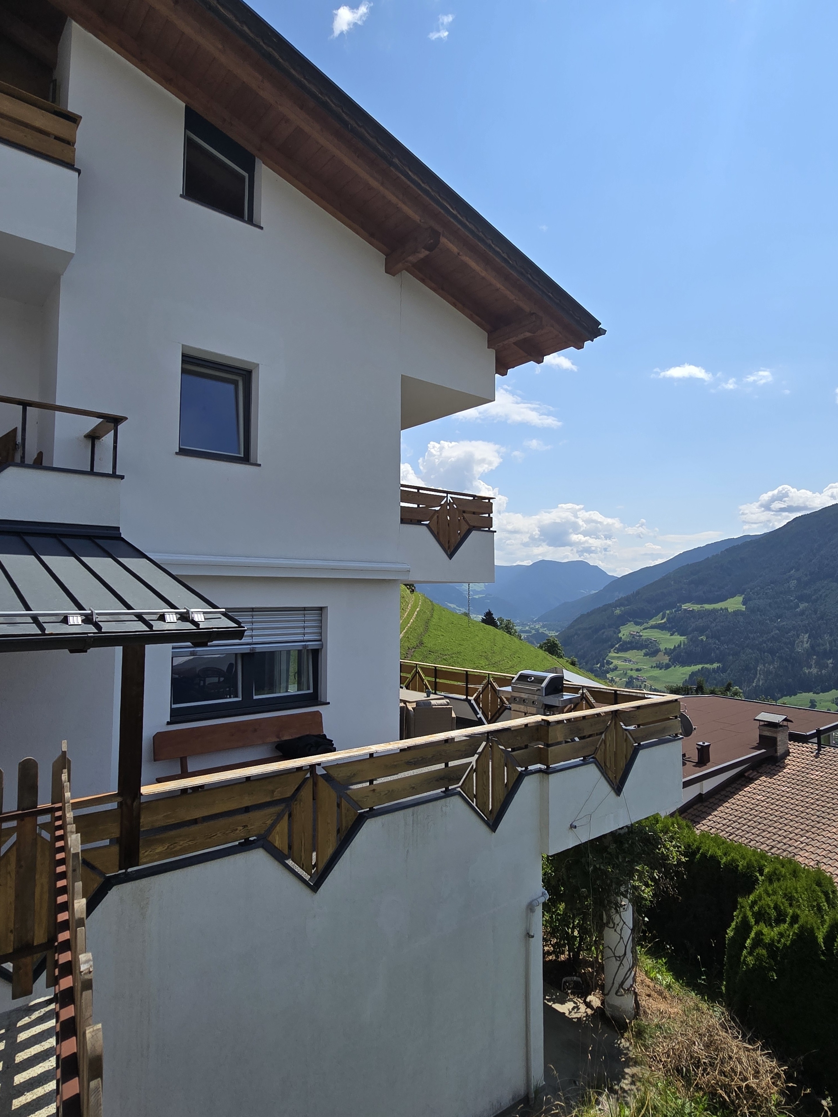KOMPLETT RENOVIERTES, ANSPRECHENDES FERIENHAUS La Casa Benessere auf 3 Etagen für 7 Personen NEU auf FeWo-PLAN! 150m², Südtirol-Ratschings in traumhaft schöner Panoramalage, Nähe Familien Ski.- und Wandergebiet Ratschings Jaufen, 3 Schlafzimmer, 1 Bad mit Waschbecken und WC und ein Badezimmer mit Dusche, Badewanne und WC im 2 Stock, Gesamt 2 WC, 3 Zimmer mit Balkonausgang, Kamin, Terrasse, kleiner Garten in ruhiger Ortsrandlage. Komplett neu renoviert.