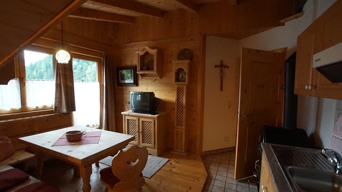 Eine große, gut ausgestattete Küche im Erdgeschoss, eine zusätzliche Küche mit Sitzecke im Obergeschoss sowie eine geräumige Stube mit Esstischen bieten ideale Voraussetzungen für gemeinsames Kochen und gesellige Stunden. Zur Ausstattung gehören außerdem WLAN, SAT-TV, zwei Gitterbetten auf Anfrage sowie ein Skikeller.