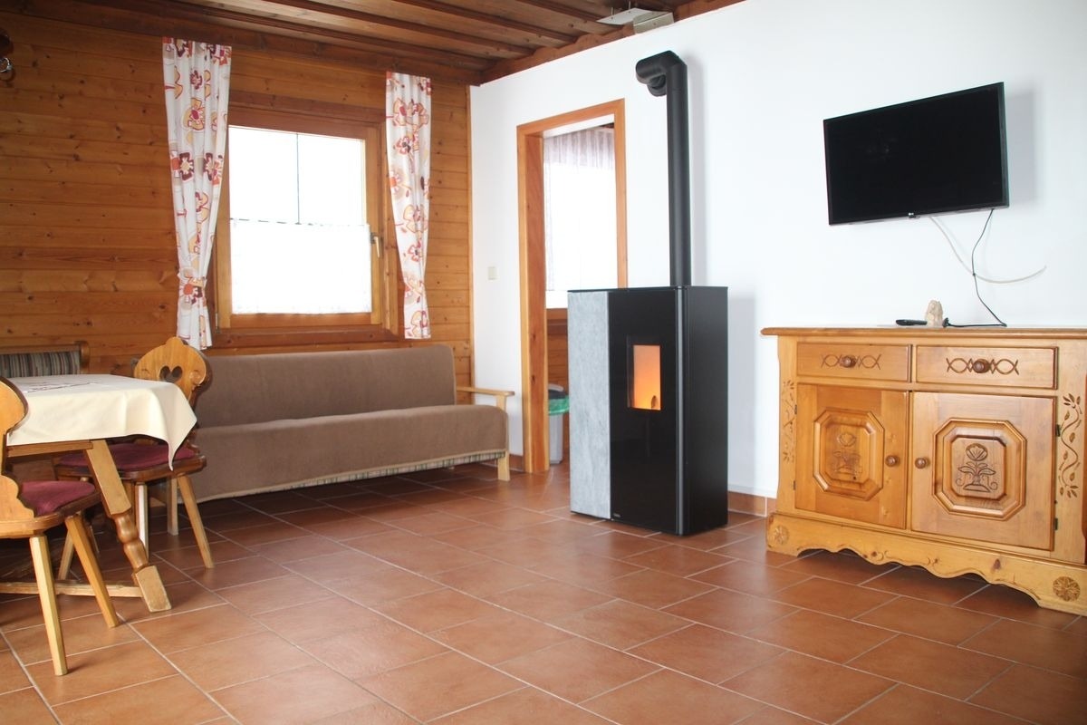 Die gemütliche Wohnstube mit Schwedenofen lädt zu geselligen Abenden und entspannter Hüttenatmosphäre ein. Ein SAT-TV ist ebenfalls vorhanden. Beheizt wird die Hütte über eine Elektroheizung sowie den Ofen, der zusätzlich für wohlige Wärme sorgt.