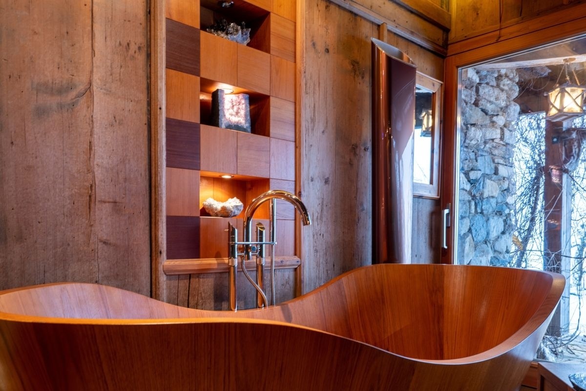 Besonderes Highlight ist der private Wellnessbereich mit Sauna, freistehender Holzbadewanne und Relaxliegen sowie der Outdoor-Whirlpool mit Lichttherapie und Musik im eingezäunten Garten.